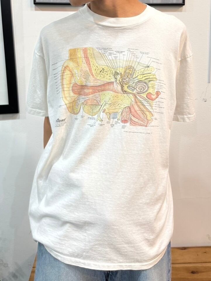 90s ONEITA Anatonmical Chart Ear Tee / オニータ アナトミカルチャート 三半規管 解剖図 人体模型 Tシャツ | TOMOSHIBI USED&VINTAGE CLOTHING