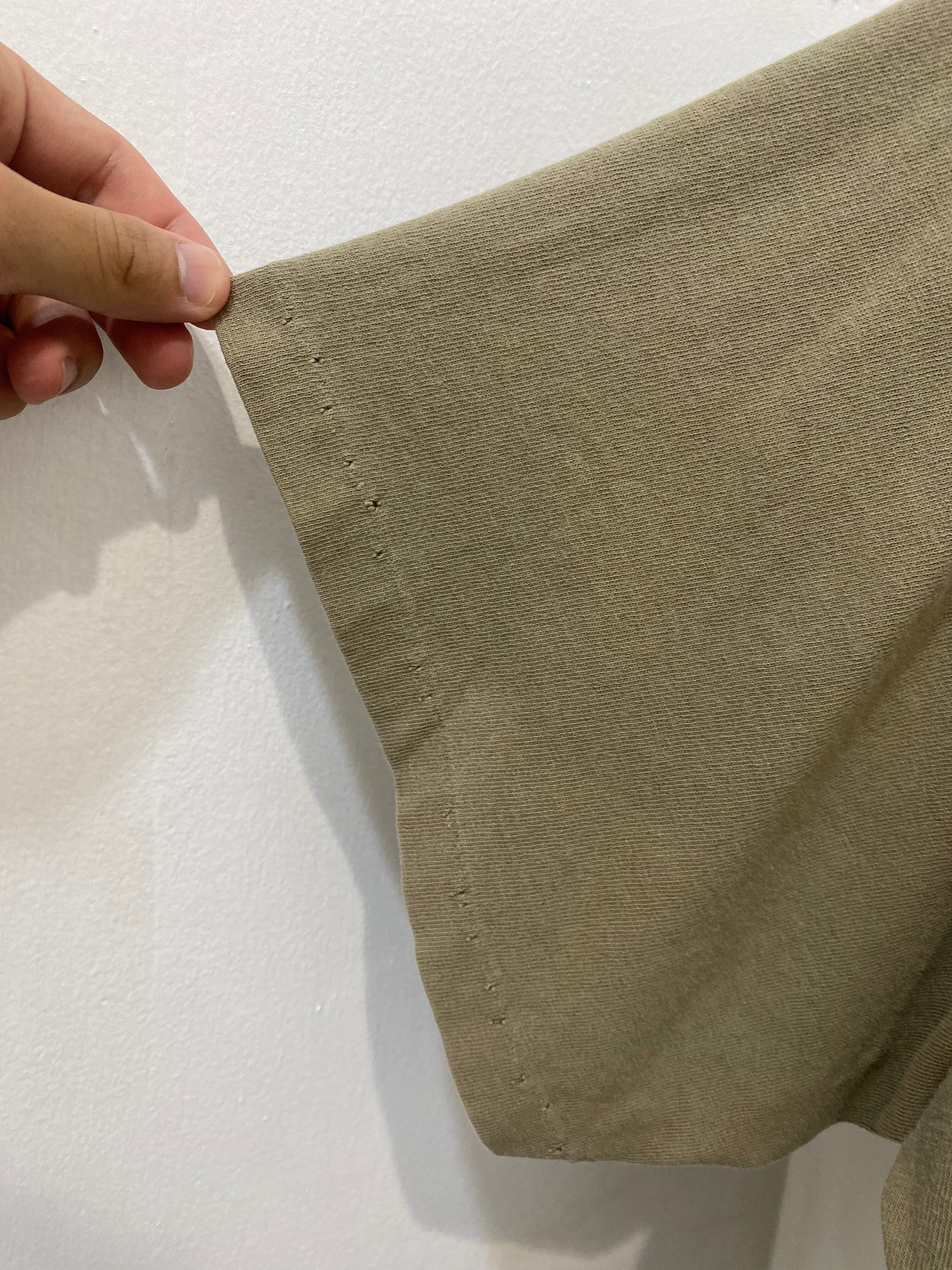 両袖と裾のステッチに沿って所々に細かなピンホールがあります。
