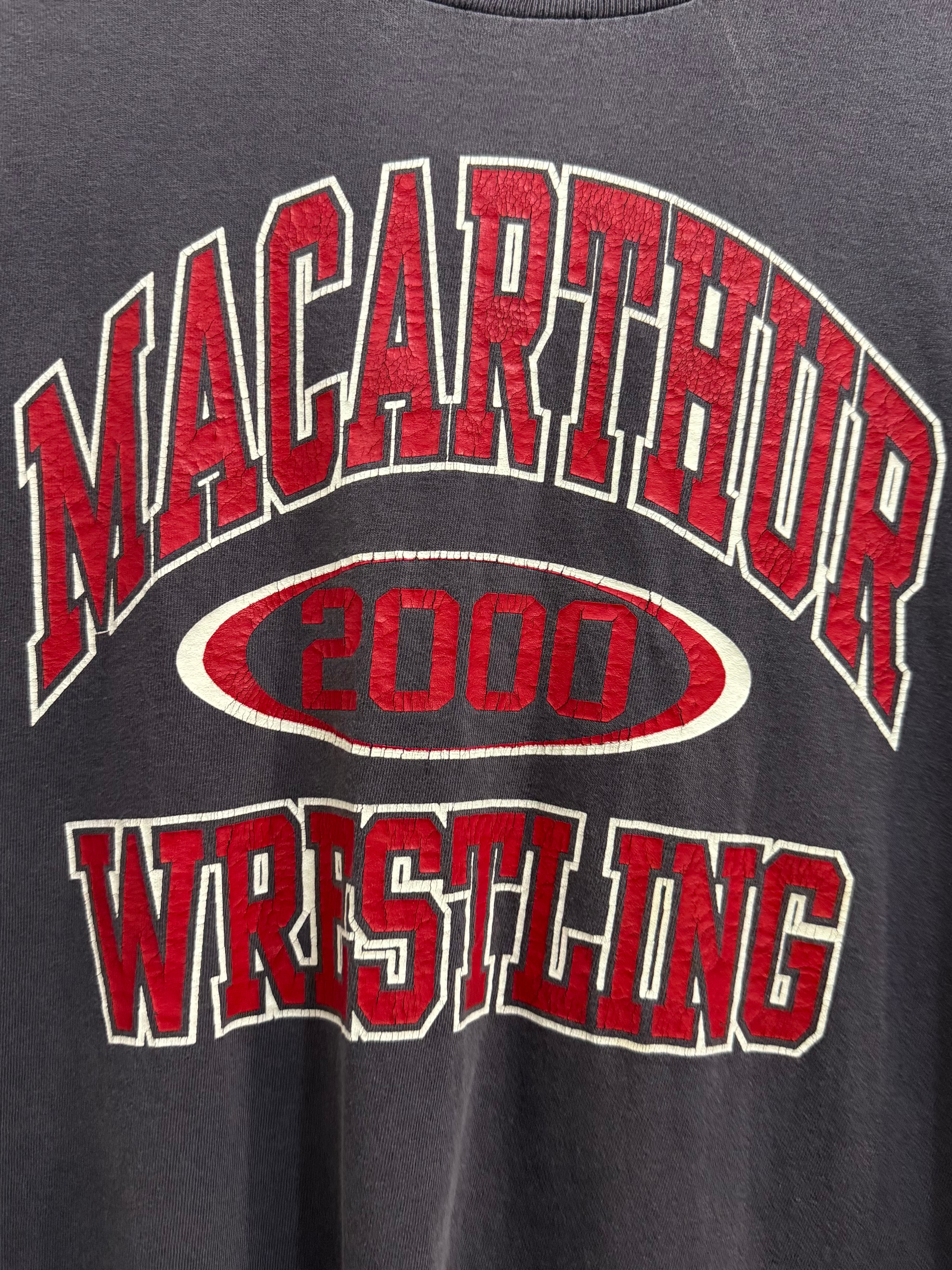00s anvil MACARTHUR WRESTLING 2000 College Logo T-Shirt