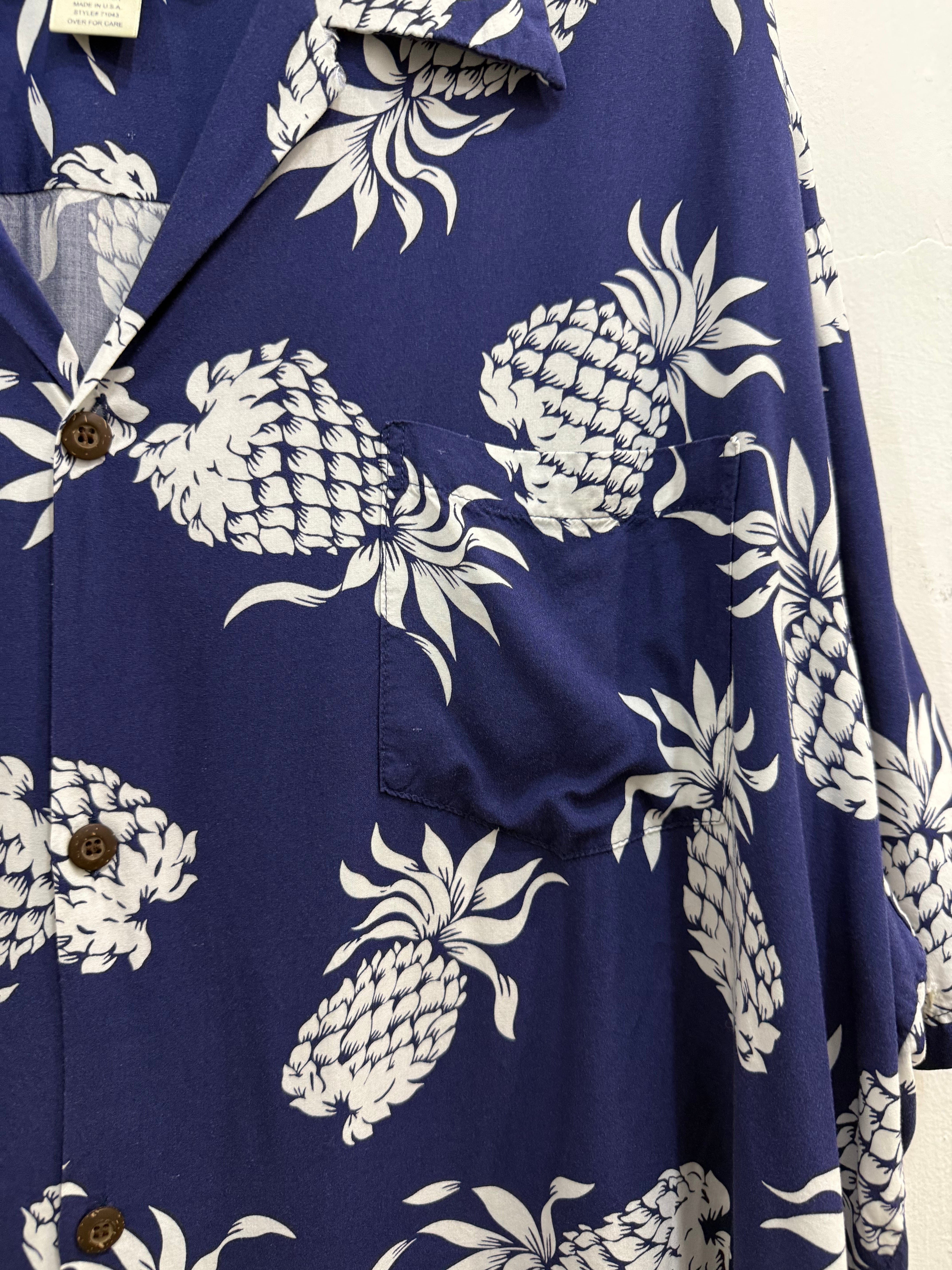 USA PINEAPPLE JUICE RAYON Open Collar Pineapple Short Sleeve Aloha Shirt / USA製 パイナップルジュース パイナップル柄 アロハ 開襟 半袖 シャツ