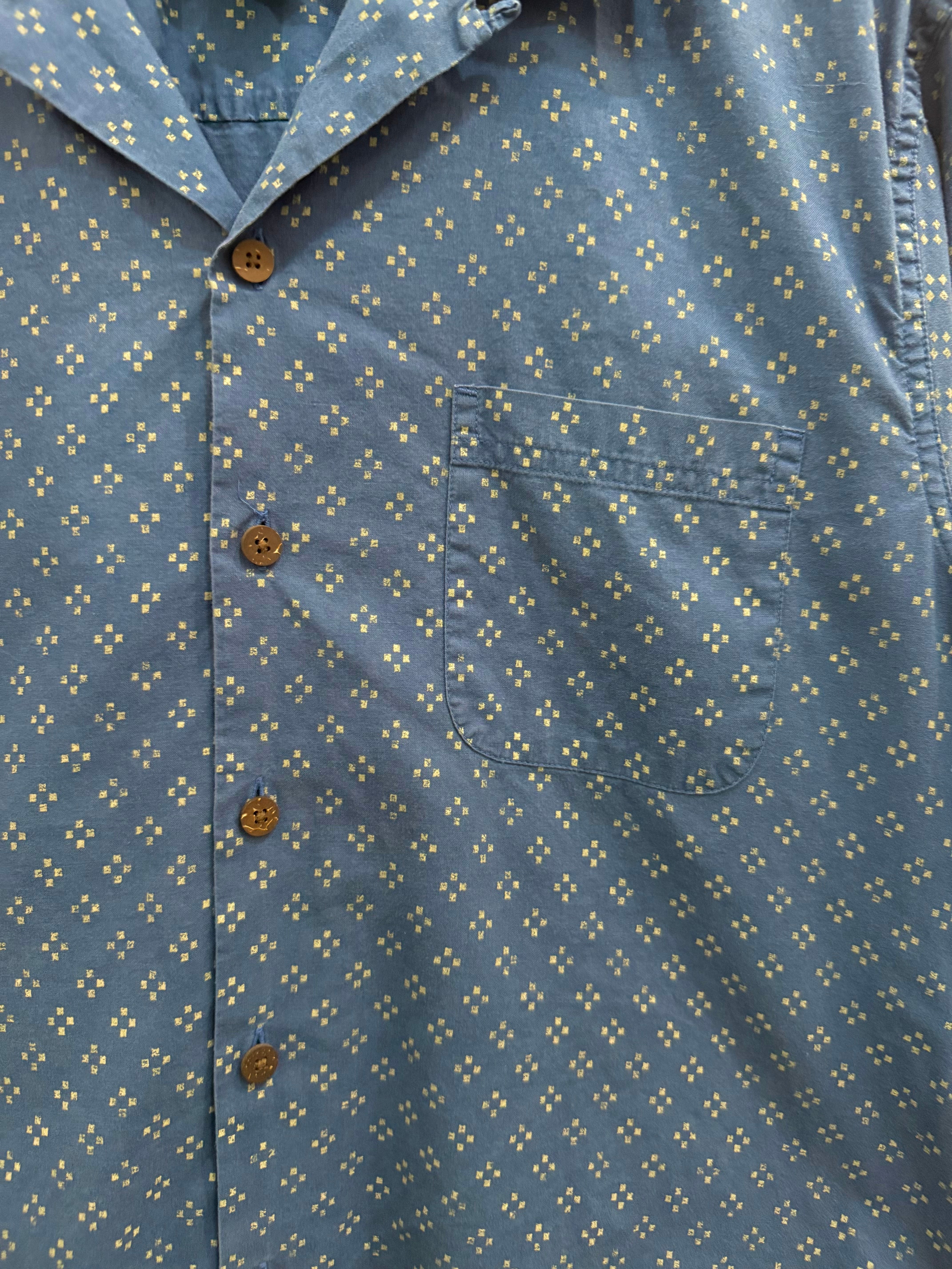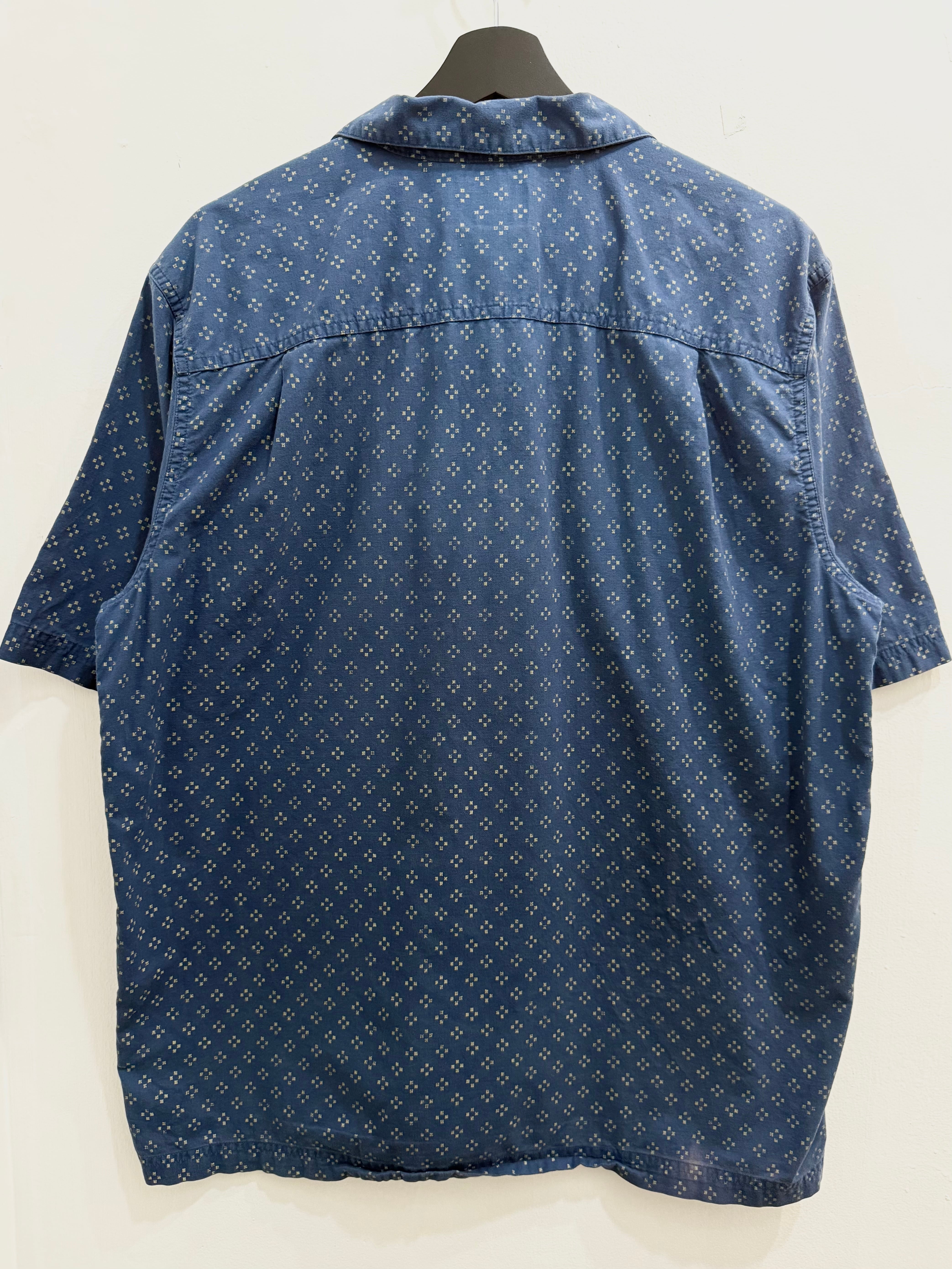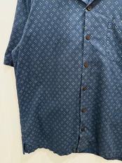 バンダナ風の小さな総柄に、合わせやすいネイビーカラー。開襟のBOXシルエット。
