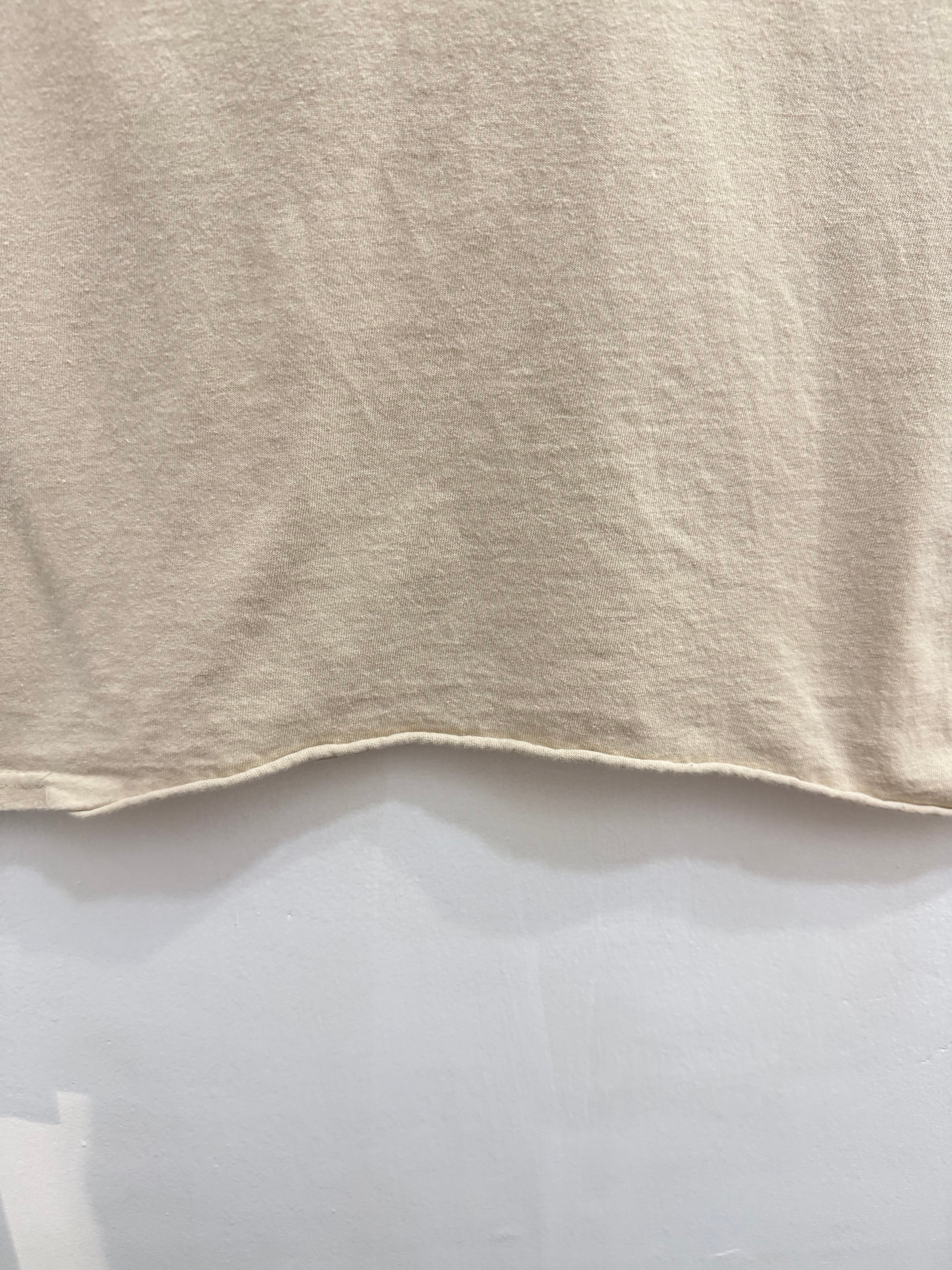 ベージュのボディにモノトーンのファミリー写真+印象的なパープルのロゴが映えるデザイン。どこかくたっとした風合いも相まって、古着ライクなスタイルにぴったりです。
