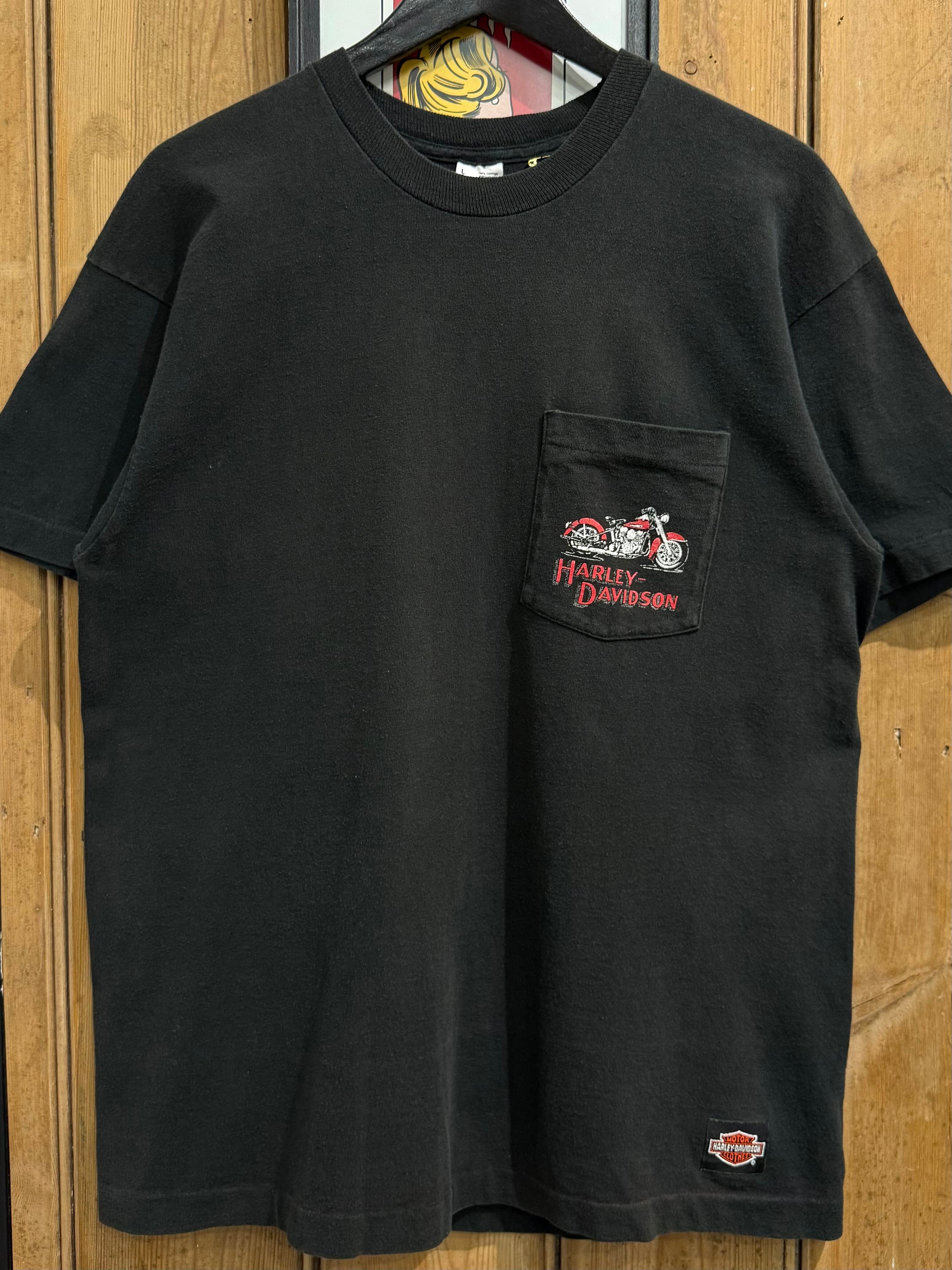 90s USA FRUIT OF THE LOOM Harley-Davidson Pocket T-shirt / 90年代 USA製 フルーツオブザルーム ハーレーダビッドソン アメリカンバイク ポケット 他社ボディ 半袖 Tシャツ | TOMOSHIBI USED&VINTAGE CLOTHING