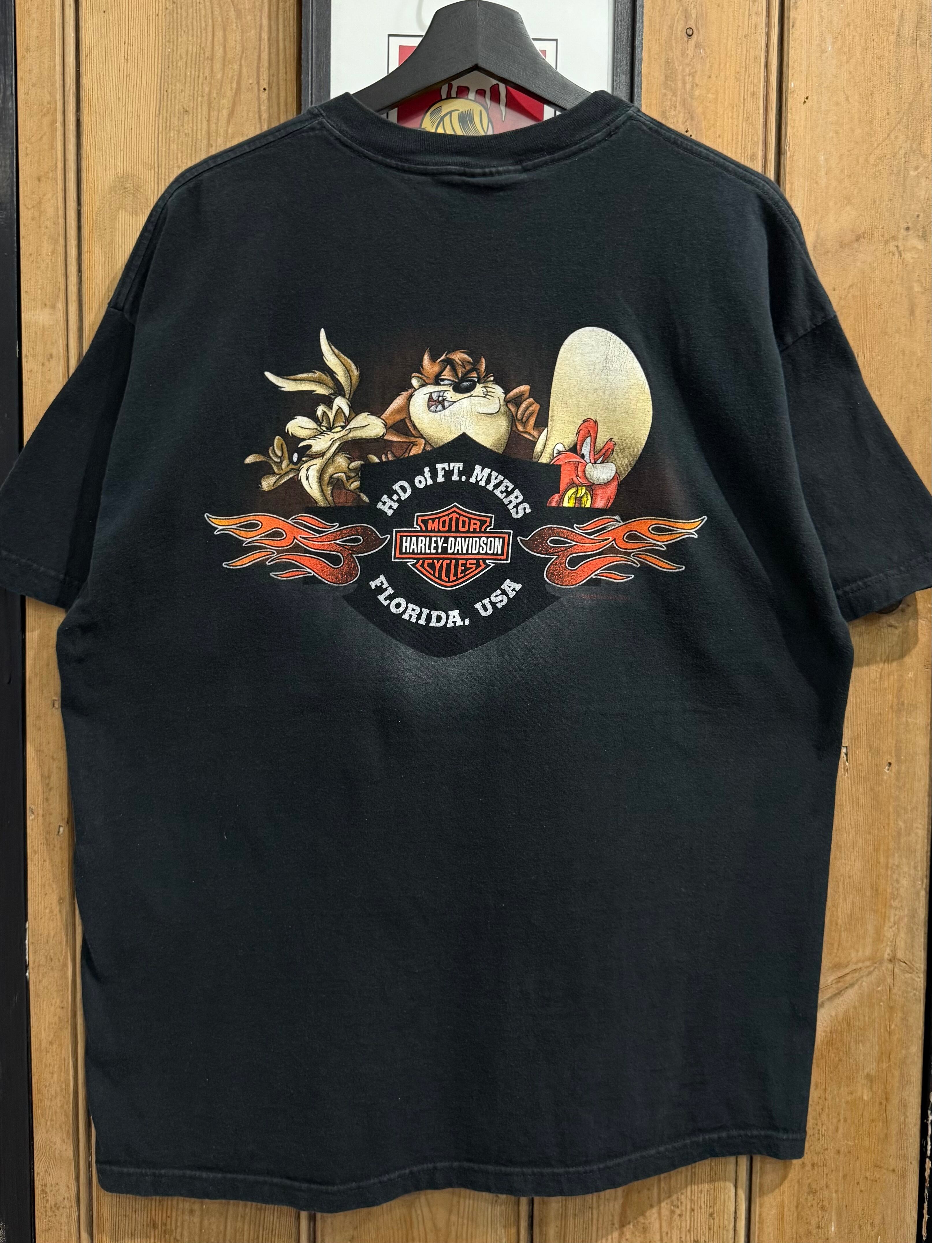 00s USA Harley-Davidson Warner Bros Looney Tunes Motorcycle character T-shirt / USA製 ハーレーダビッドソン ワーナーブラザーズ ルーニーテューンズ モーターサイクル バイク キャラ 半袖 Tシャツ | TOMOSHIBI USED&VINTAGE CLOTHING
