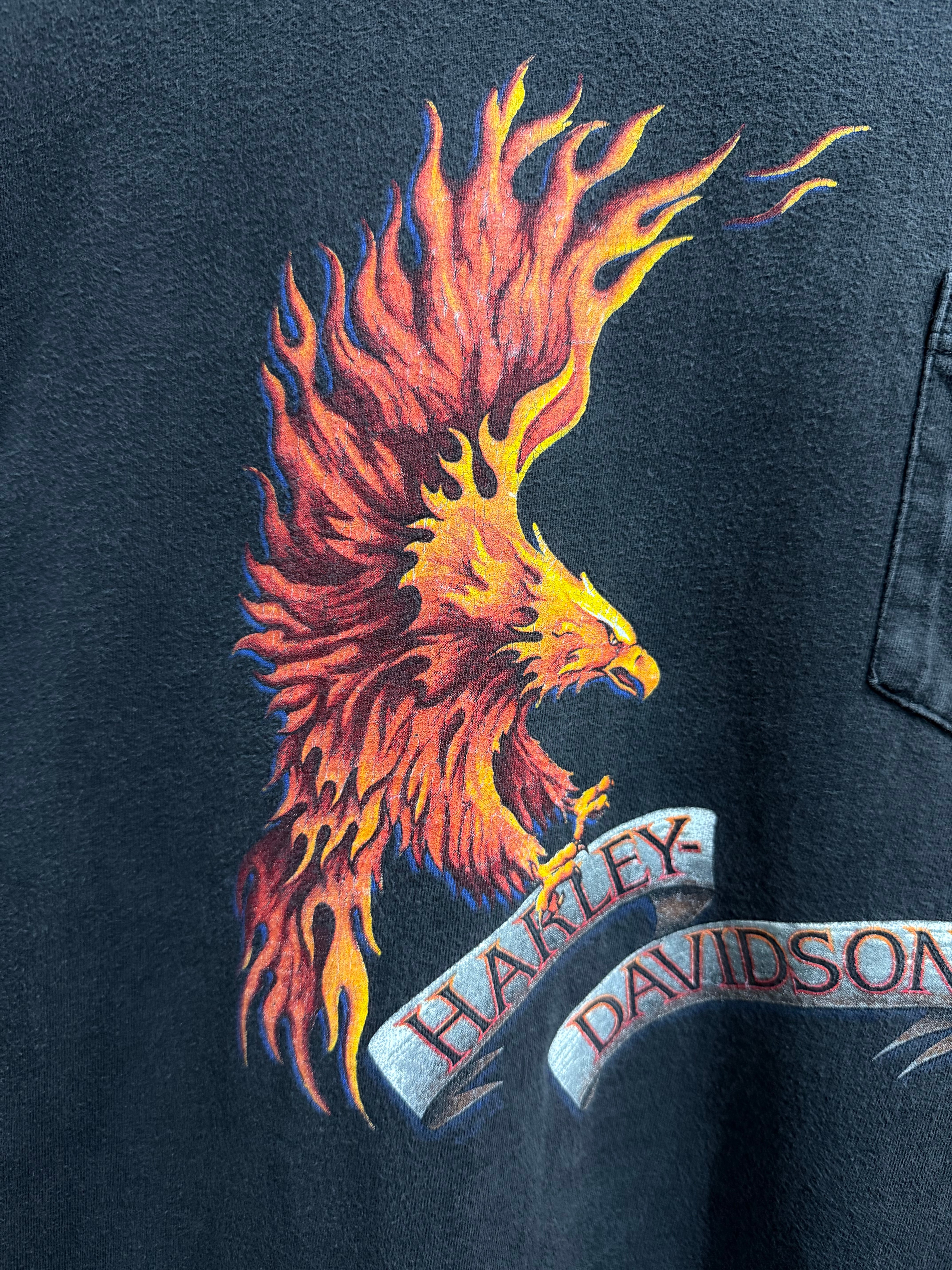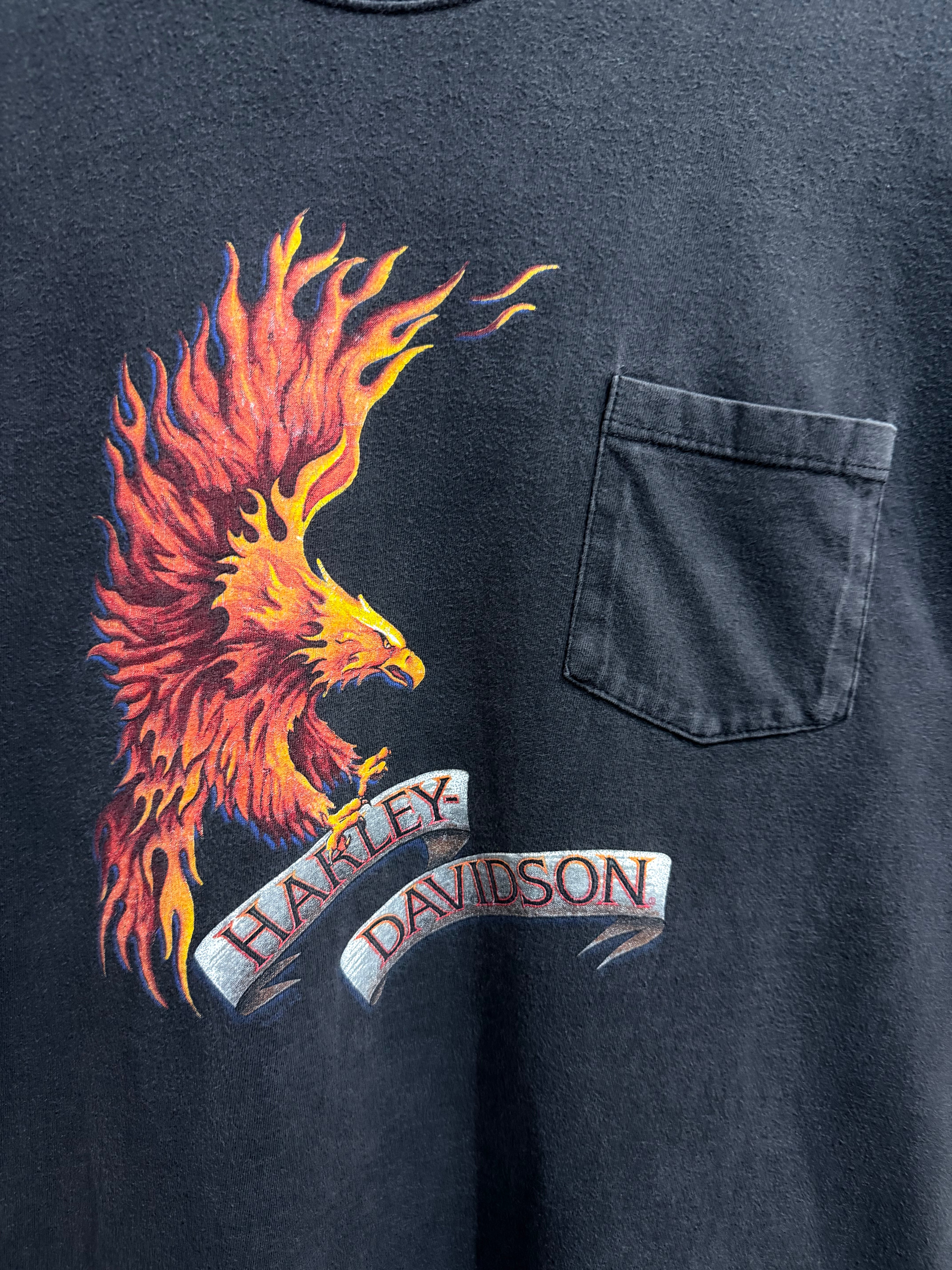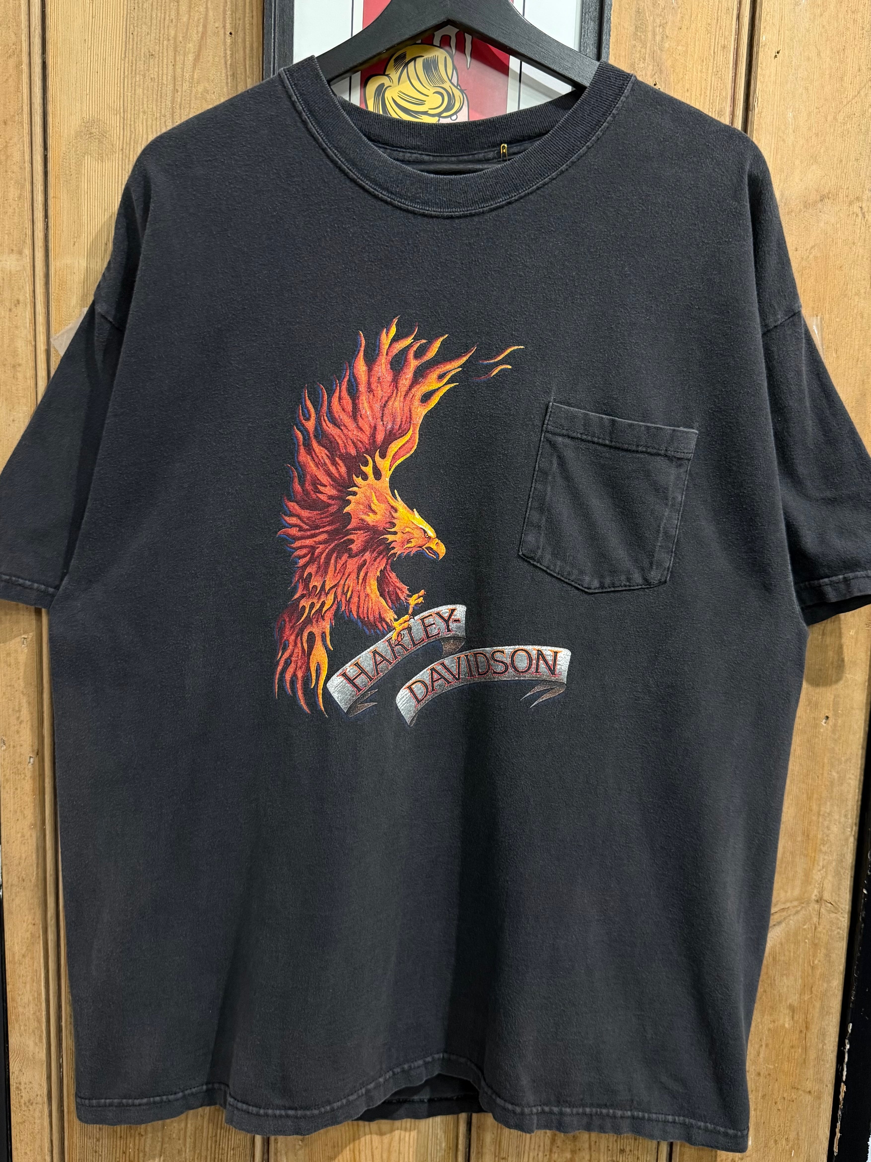 90s USA Harley-Davidson Motorcycle DENNEY'S Flame Eagle T-Shirt / 90年代 USA製 ハーレーダビッドソン モーターサイクル フレイム イーグル 半袖 Tシャツ | TOMOSHIBI USED&VINTAGE CLOTHING