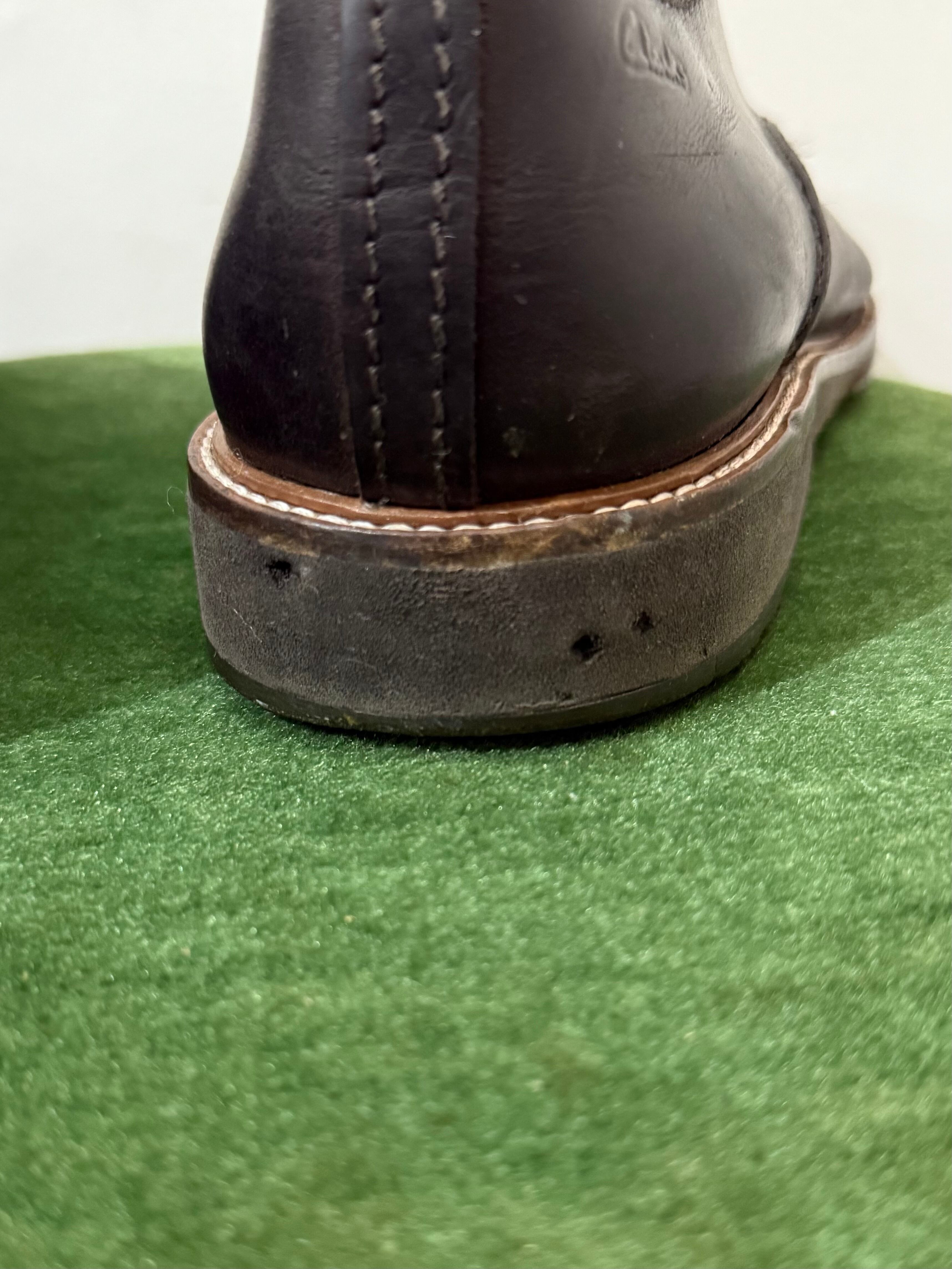 ヒール部分にClarksのロゴが入るデザイン、