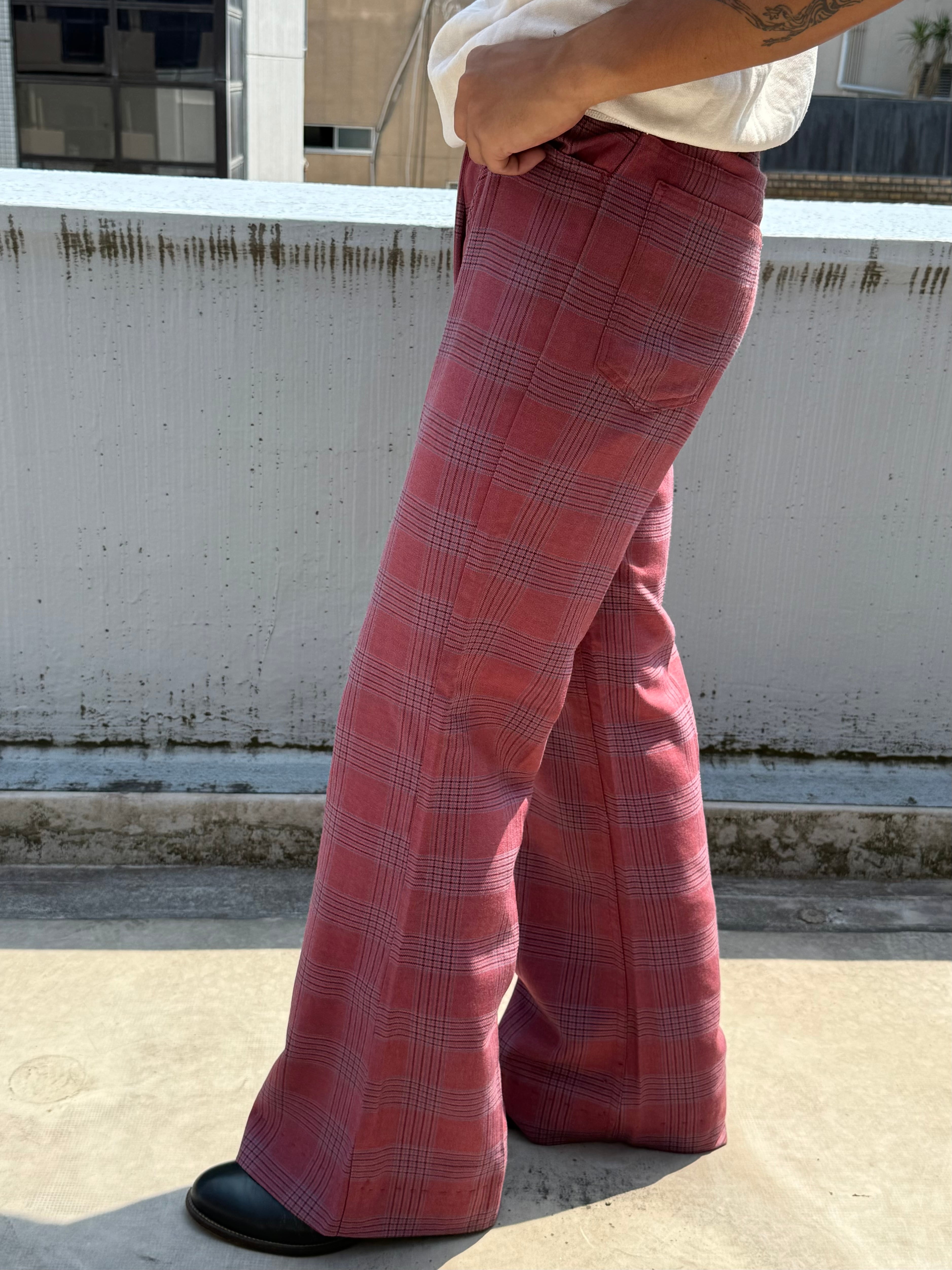 80s Levi's 643 STA-PREST check pattern Bootcut Flare Pants 42TALON / 80年代 リーバイス スタプレ チェック柄 ブーツカット フレアパンツ スラックス パンツ | TOMOSHIBI USED&VINTAGE CLOTHING
