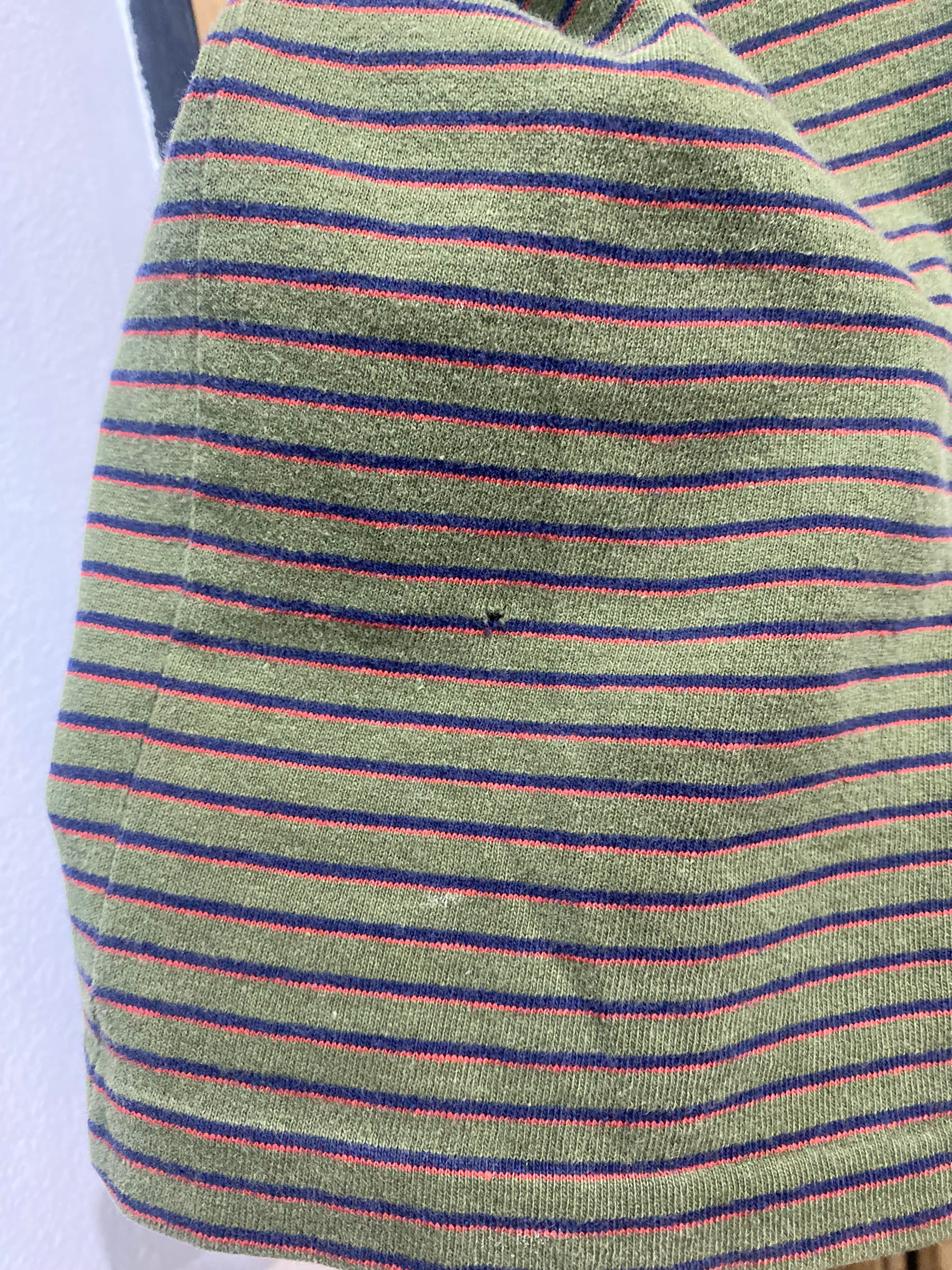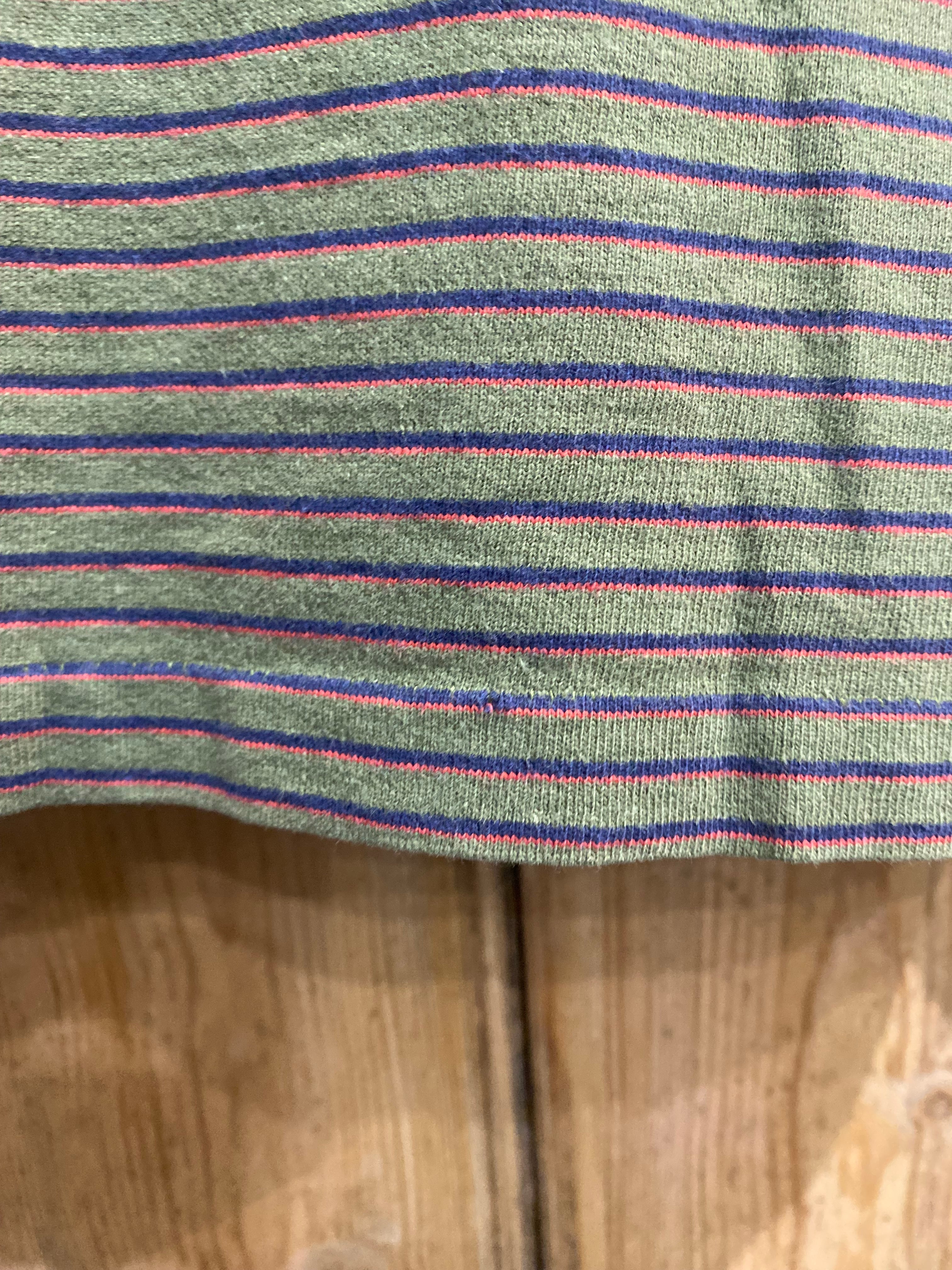 好配色の落ち着いたボーダー柄。ゆったり着れるサイズ感です。