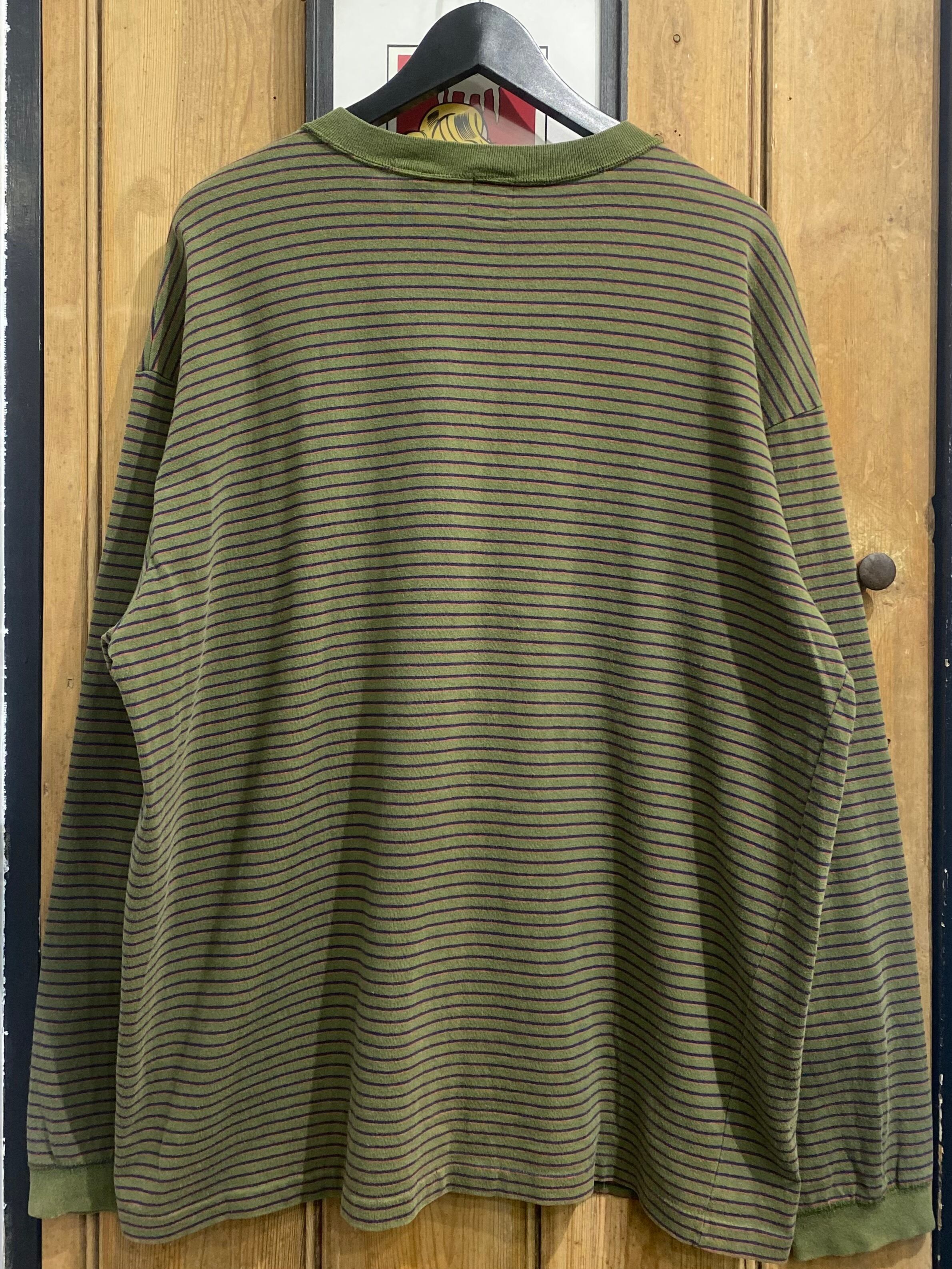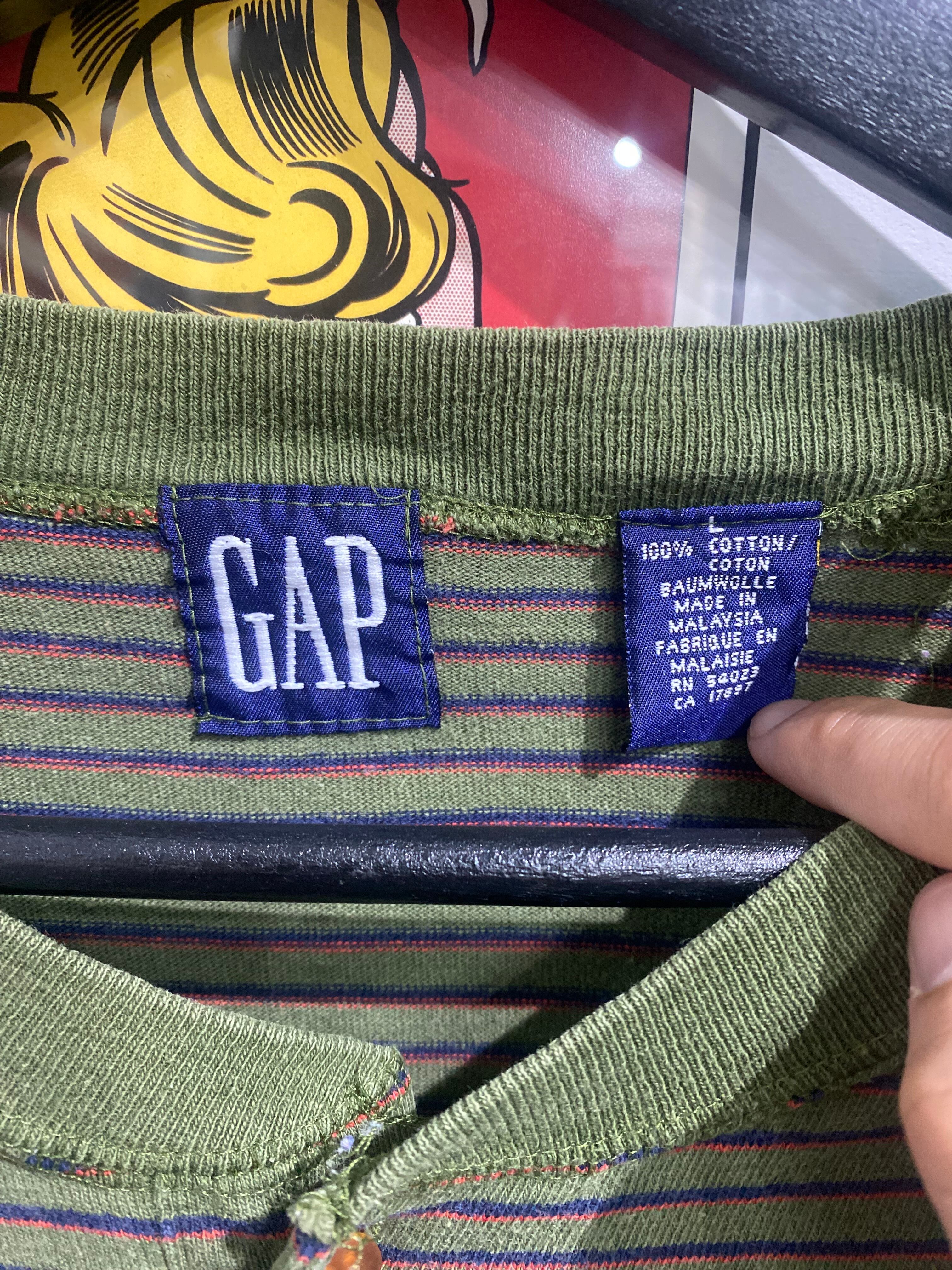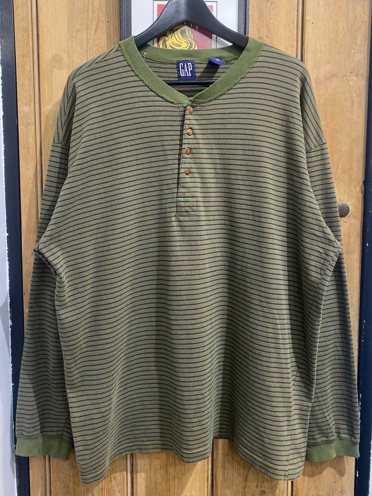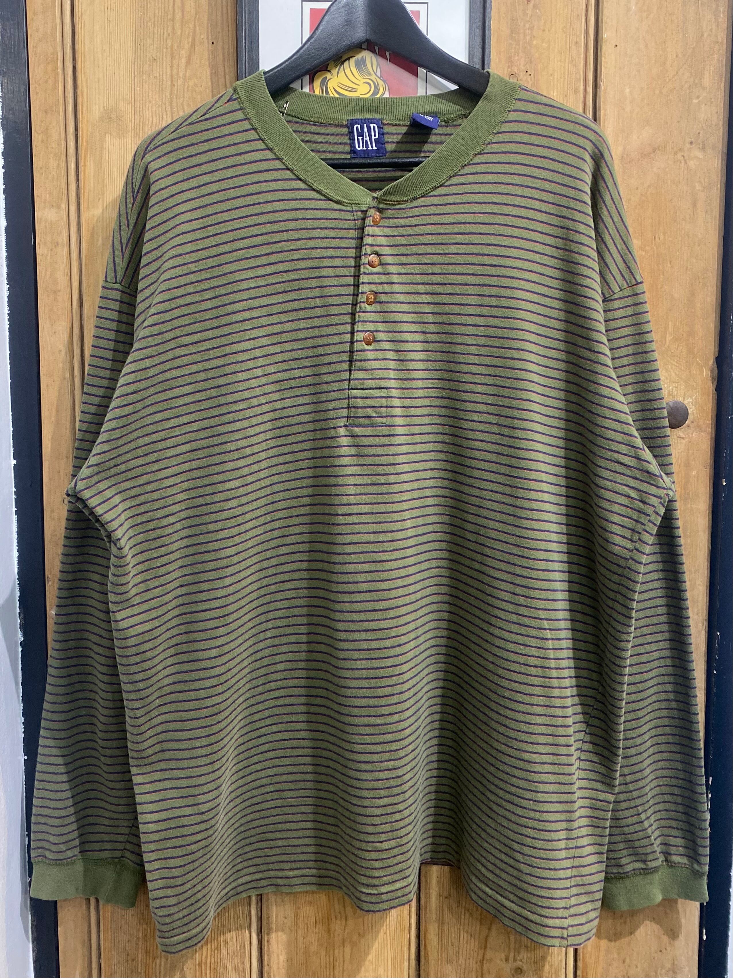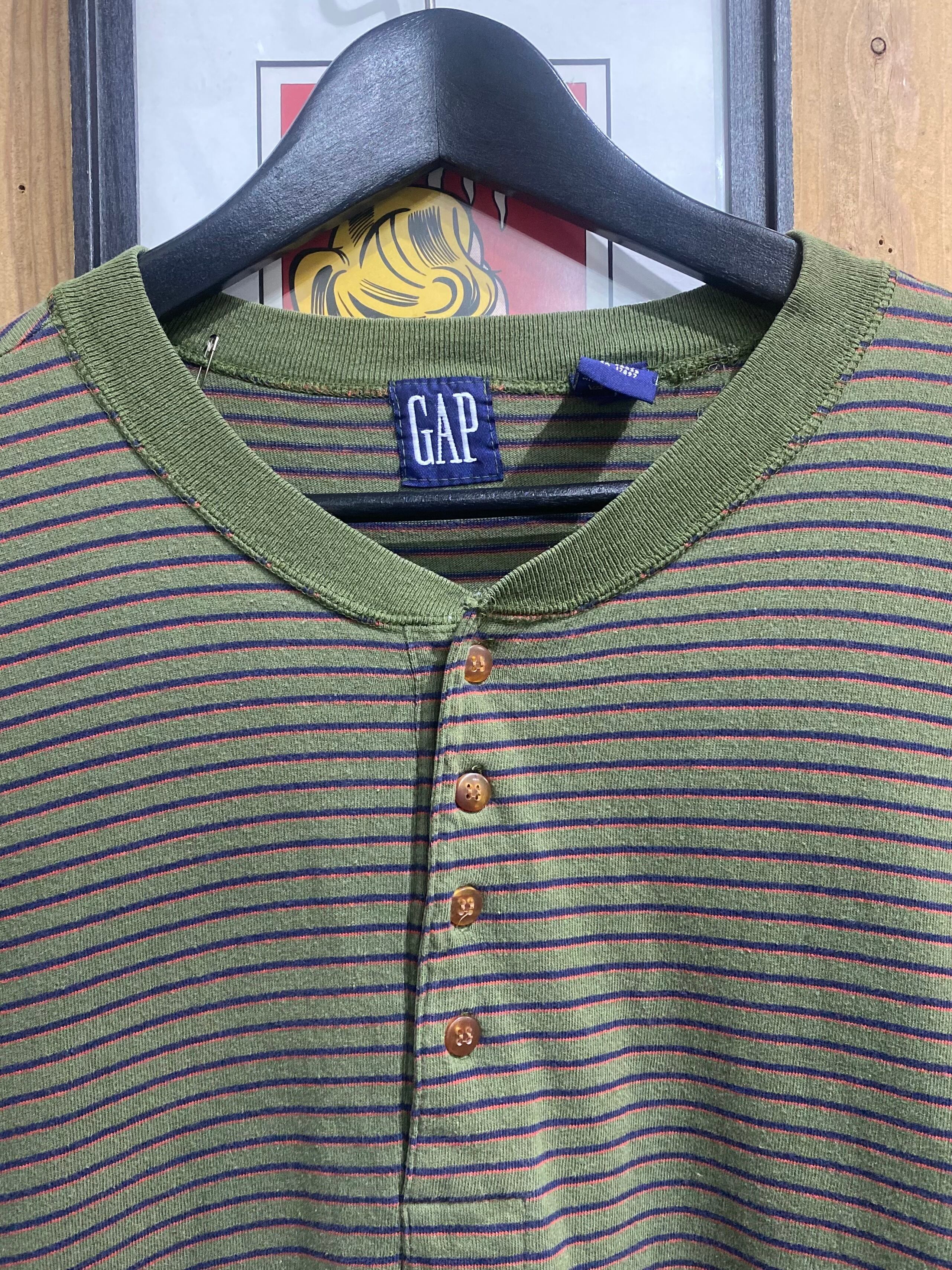 90s OLD GAP Boarder Henry-neck Long Sleeve Tee