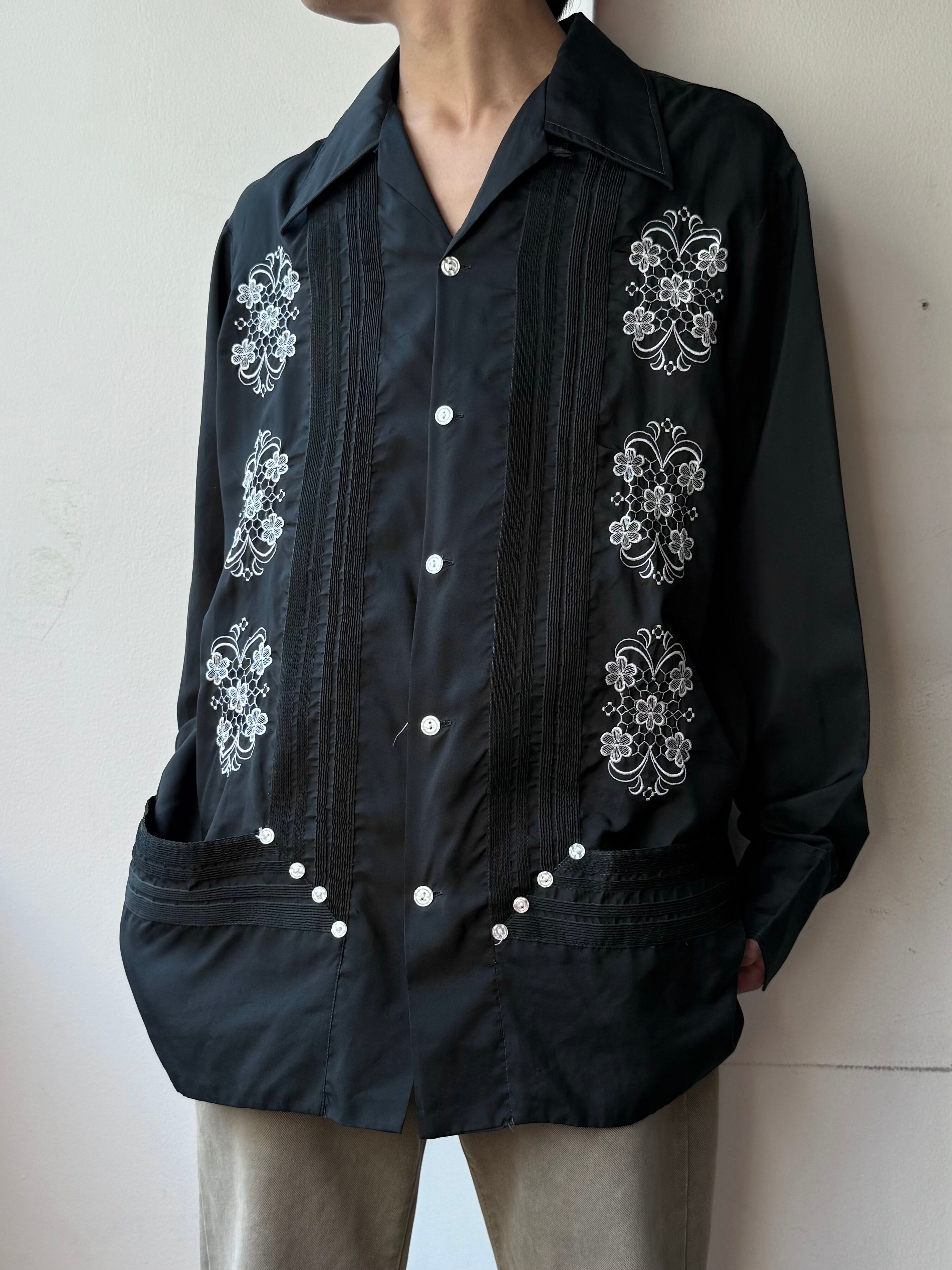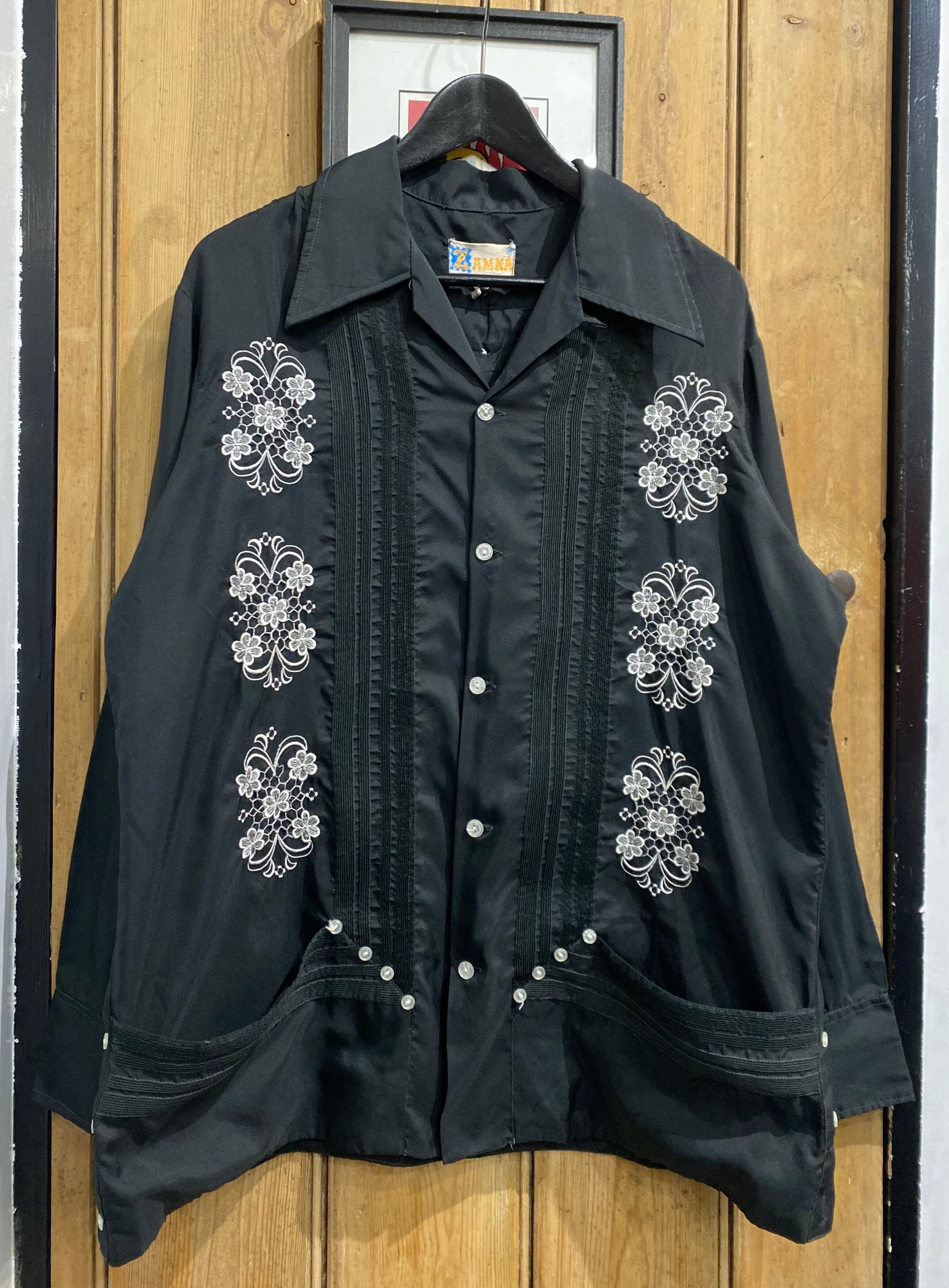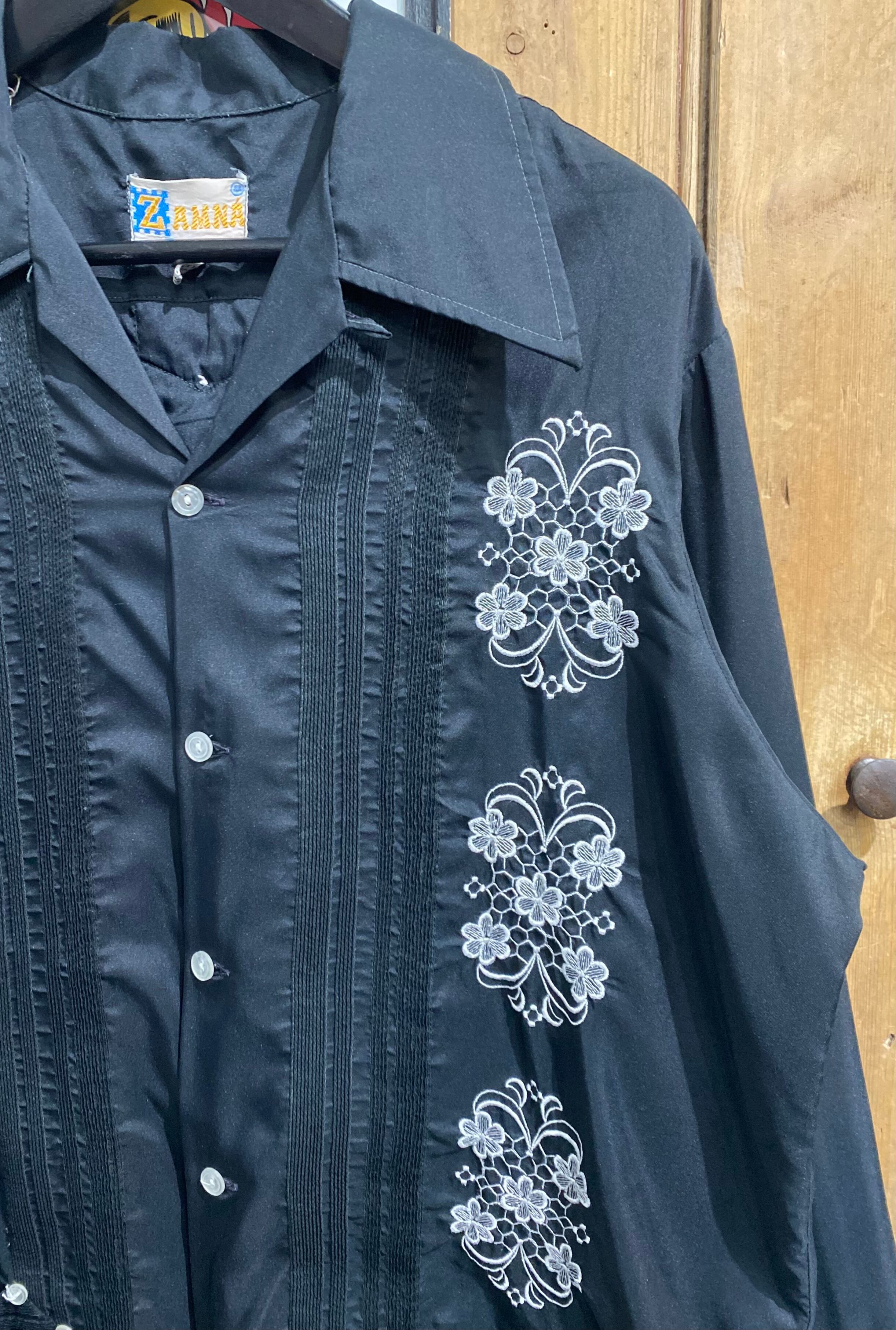 70s 80s ZAMNA polyester Long Sleeve Cuban Shirt / ポリエステル 長袖 刺繍 キューバシャツ | TOMOSHIBI USED&VINTAGE CLOTHING