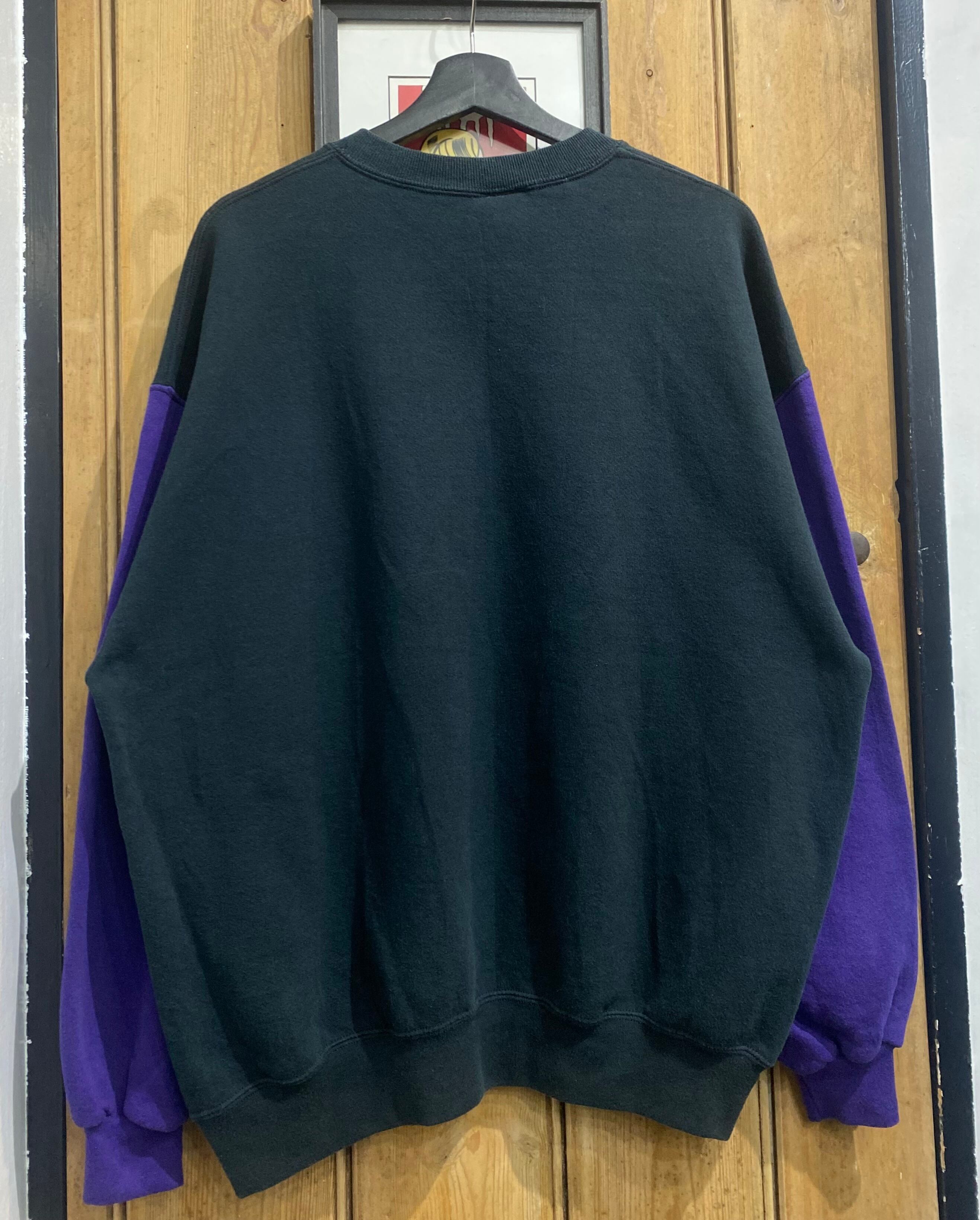 ブラック×パープルのツートーンスウェット。