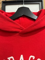 発色のいい赤色の色合いと、フロントの赤ボディに白色のロゴがシンプルで合わせやすい1着です。