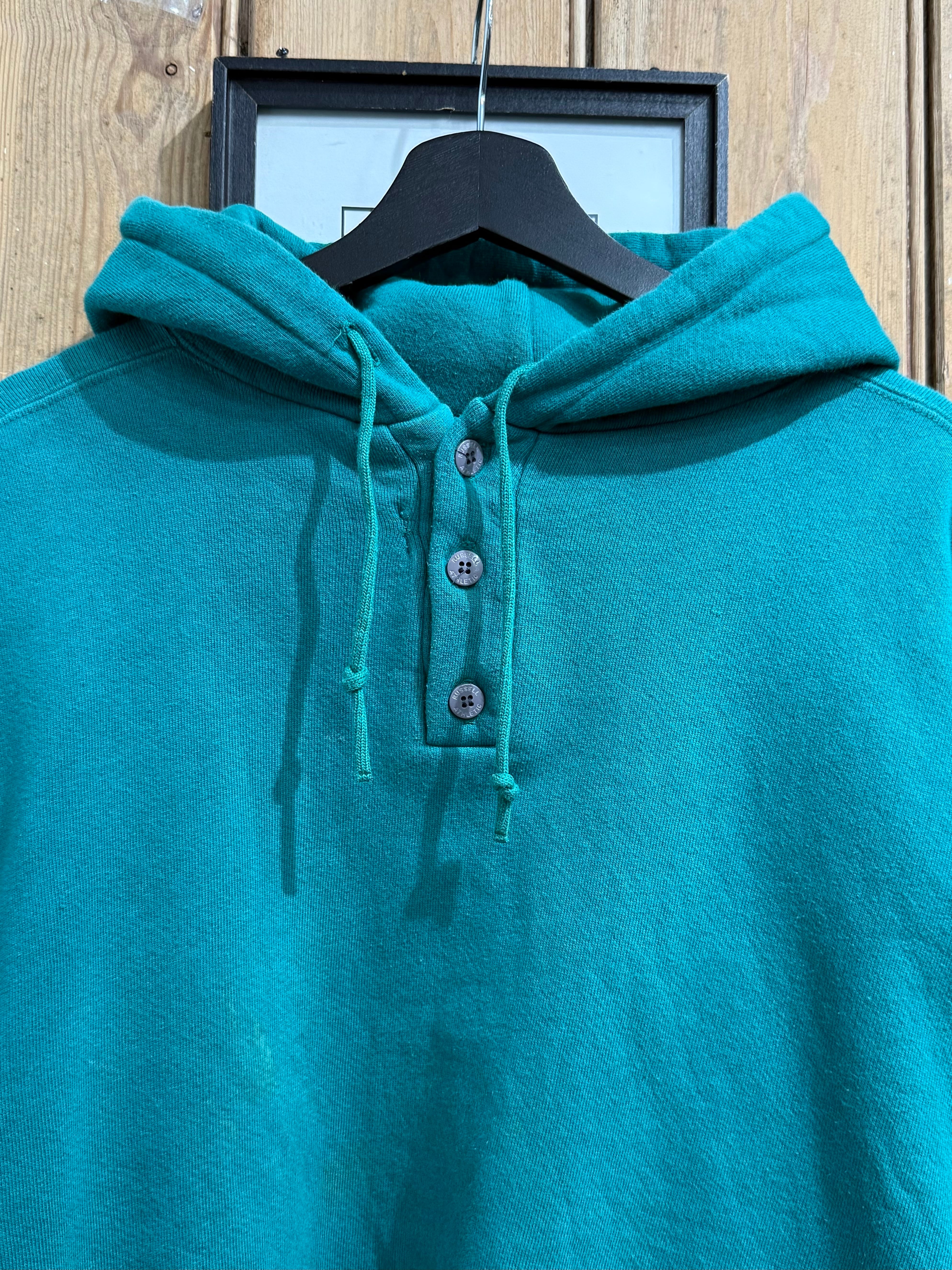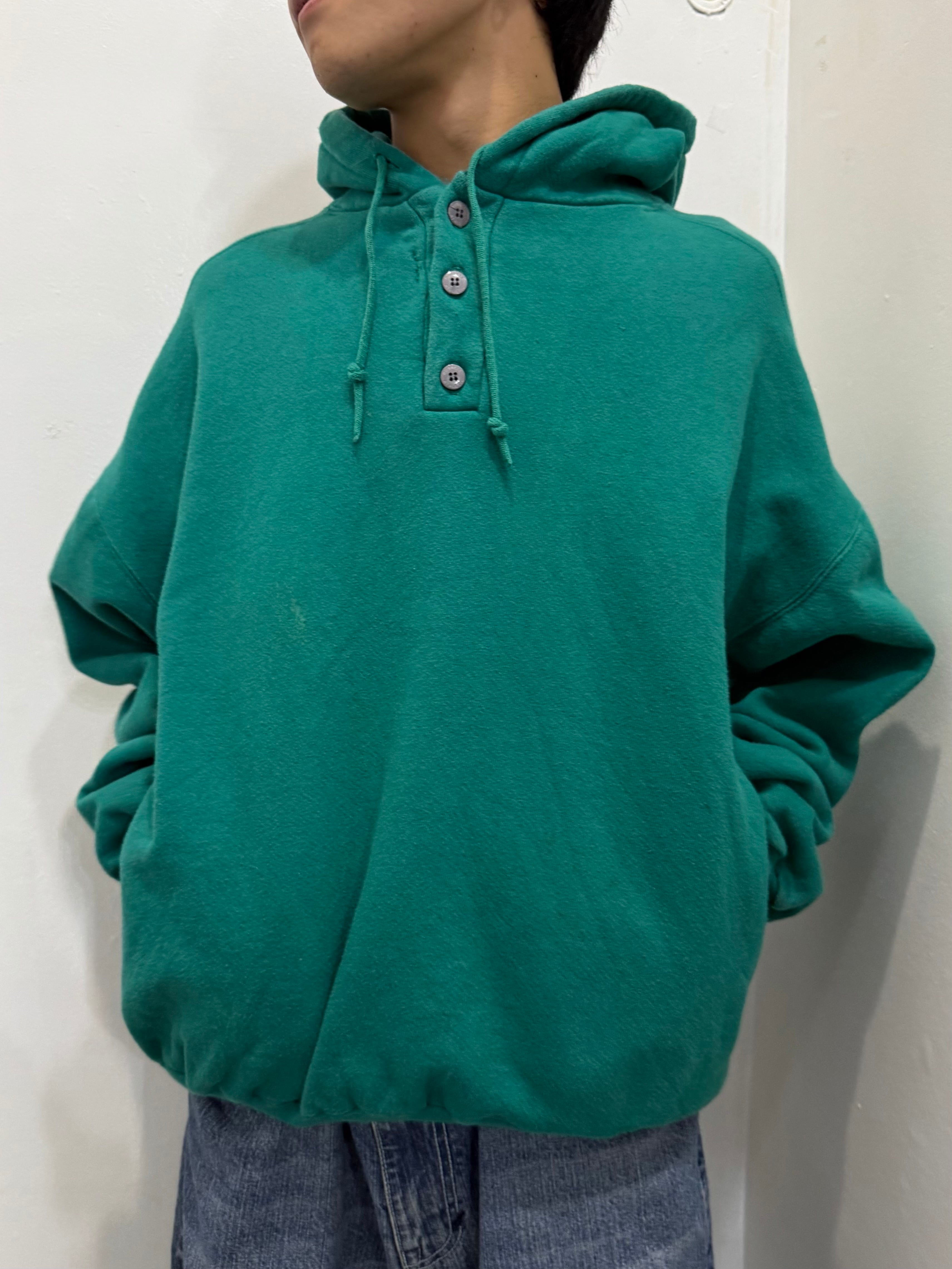 90s USA RUSSELL ATHLETIC High Cotton Henley Neck Sweat Hoodie / ラッセルアスレチック ハイコットン ヘンリーネック スウェット フーディ | TOMOSHIBI USED&VINTAGE CLOTHING
