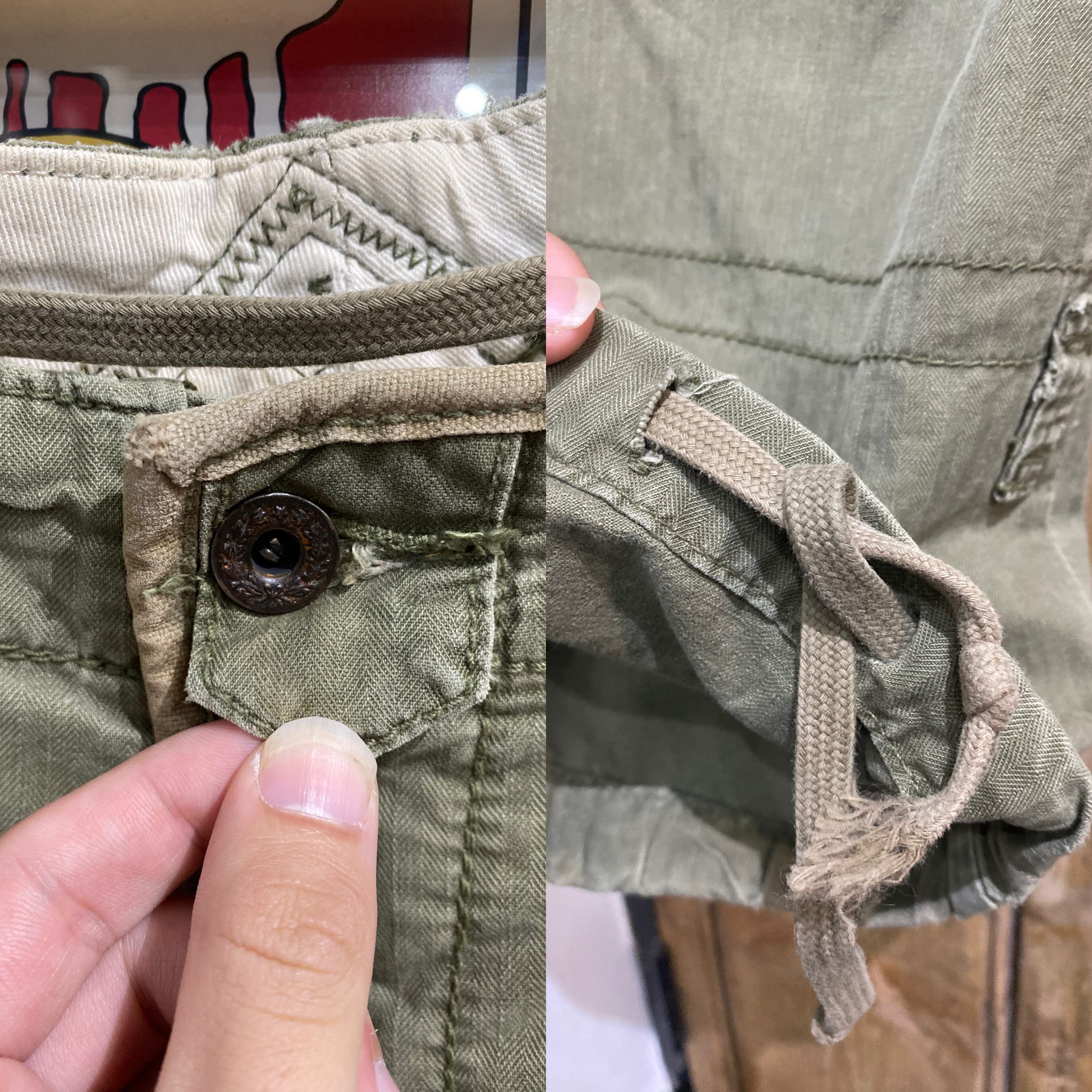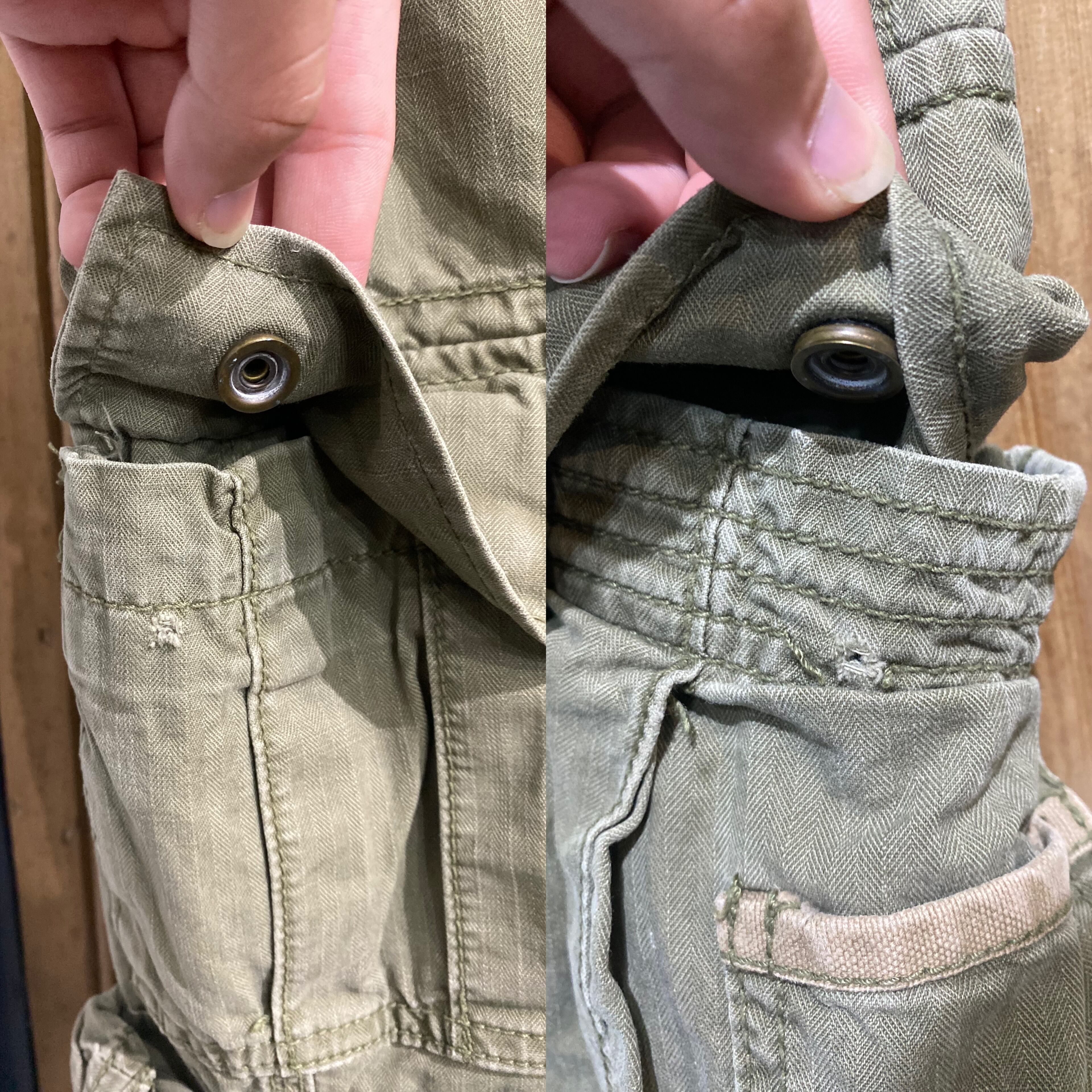 両カーゴポケットのスナップボタンが取れております。