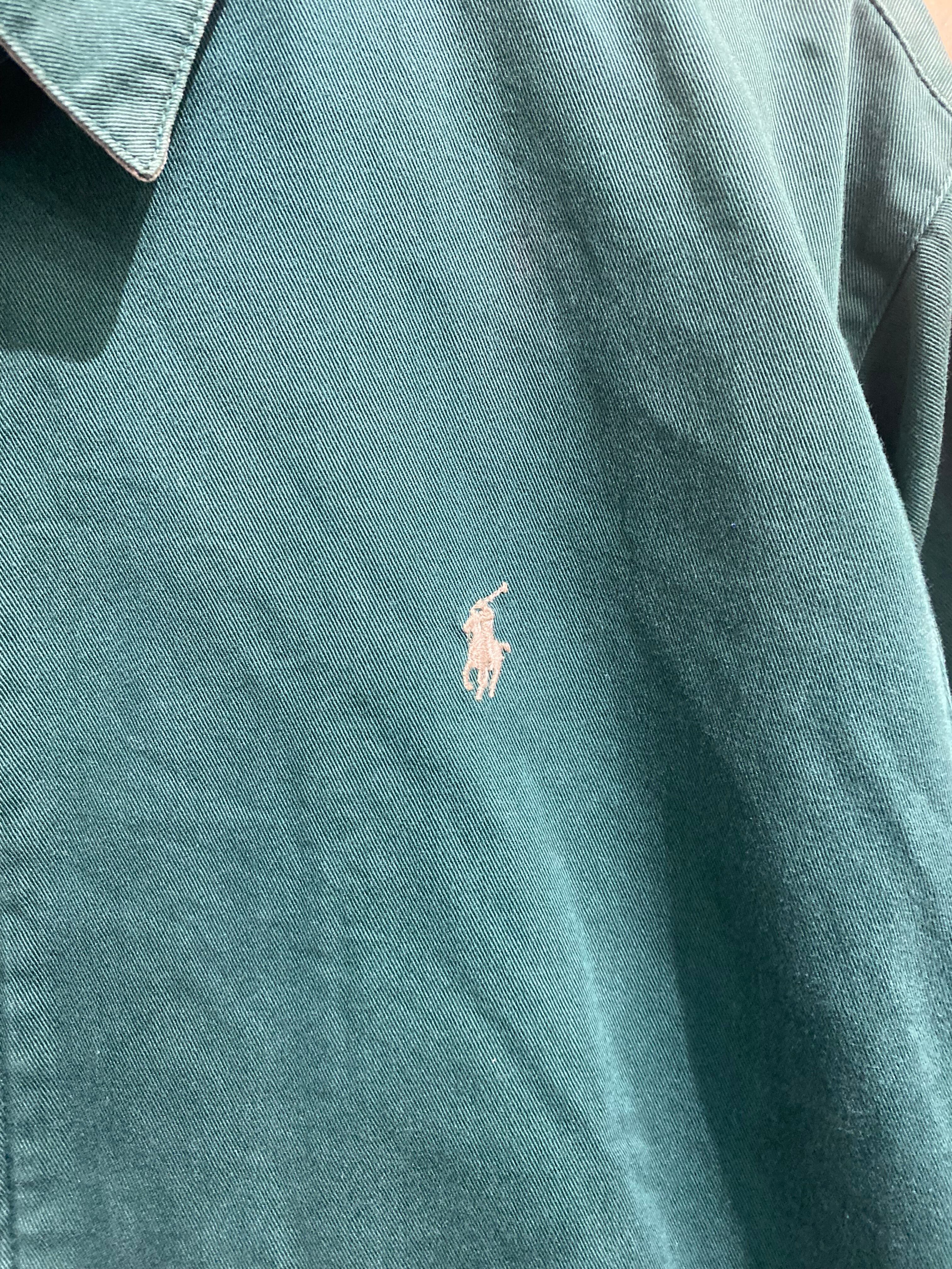 深みのあるグリーンの色合いに、胸元のワンポイントのポニー刺繍がシンプルで洗練されたデザインです。
