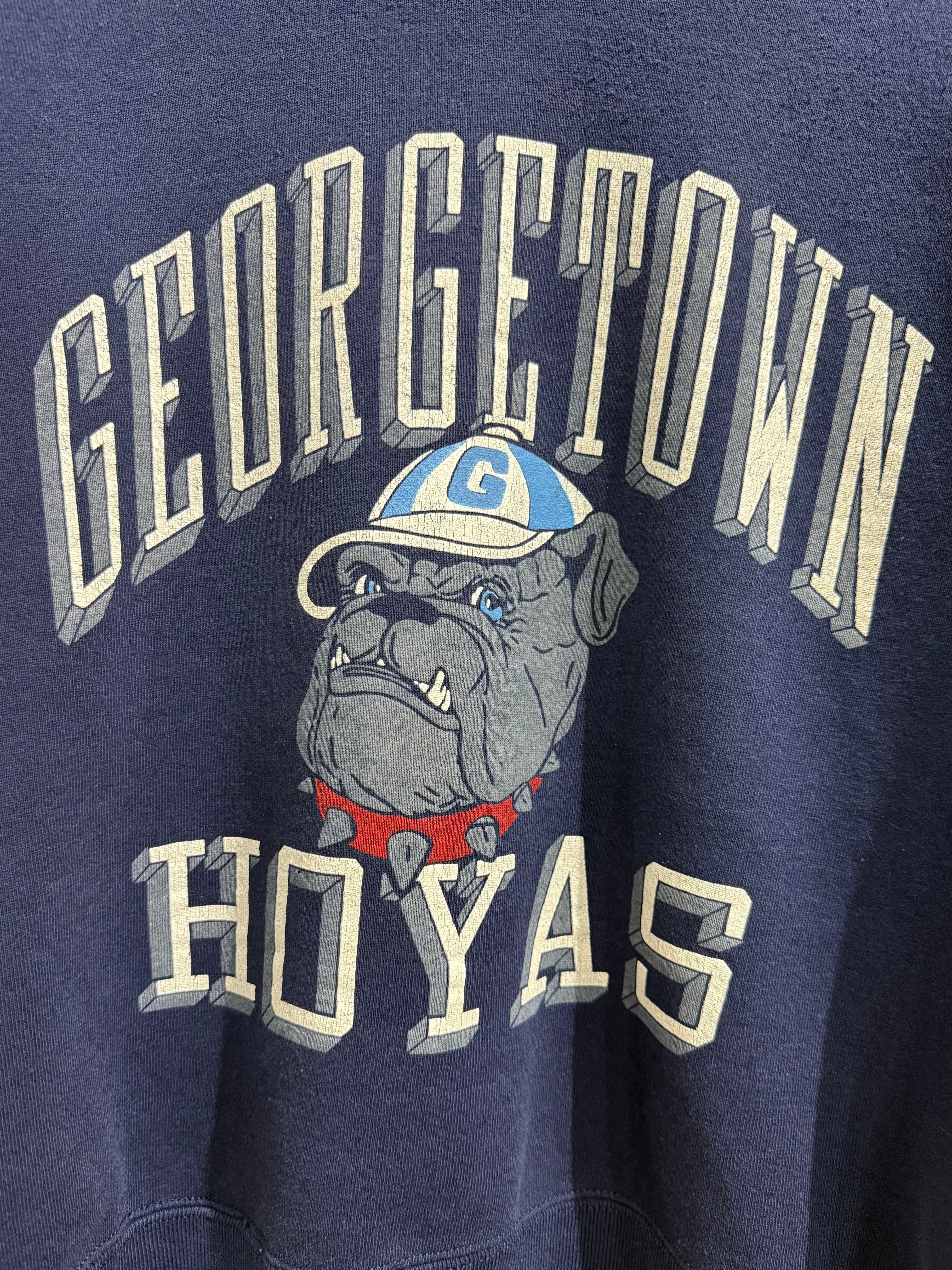 フロントにGeorgetown Hoyasのロゴとマスコットキャラクターのブルドッグのロゴデザインが入り、