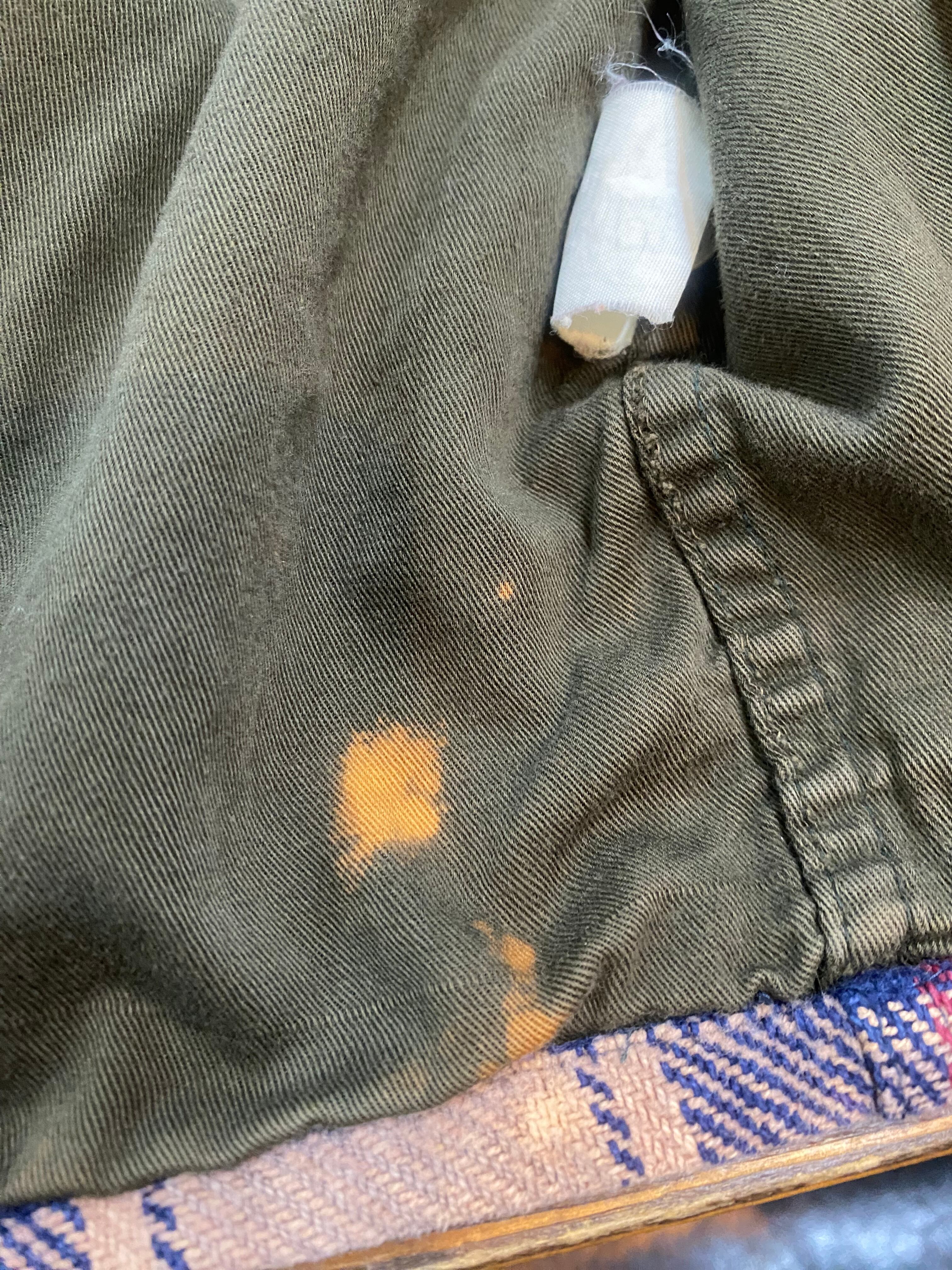 裏地にブリーチ飛びによる汚れがあります。