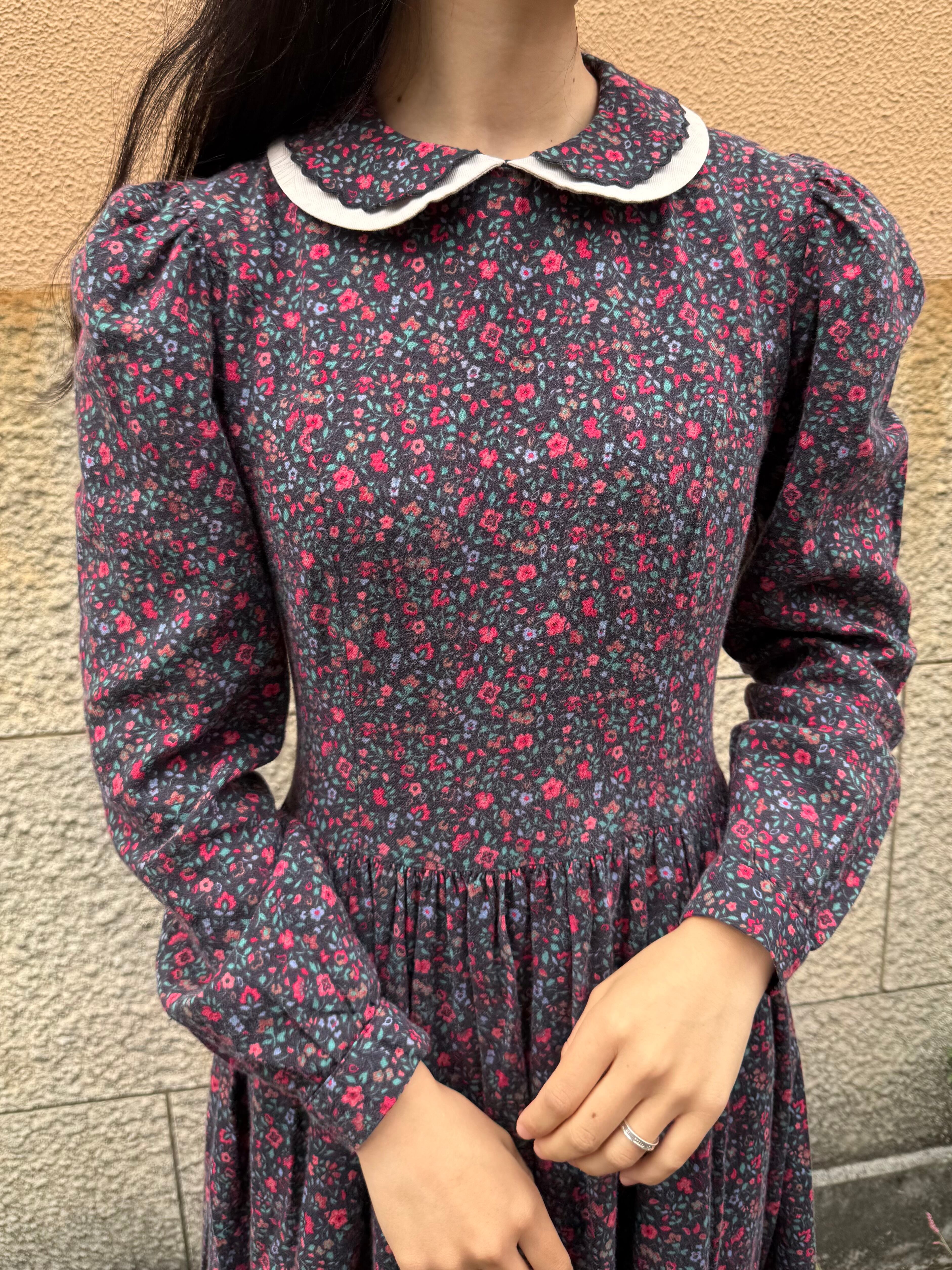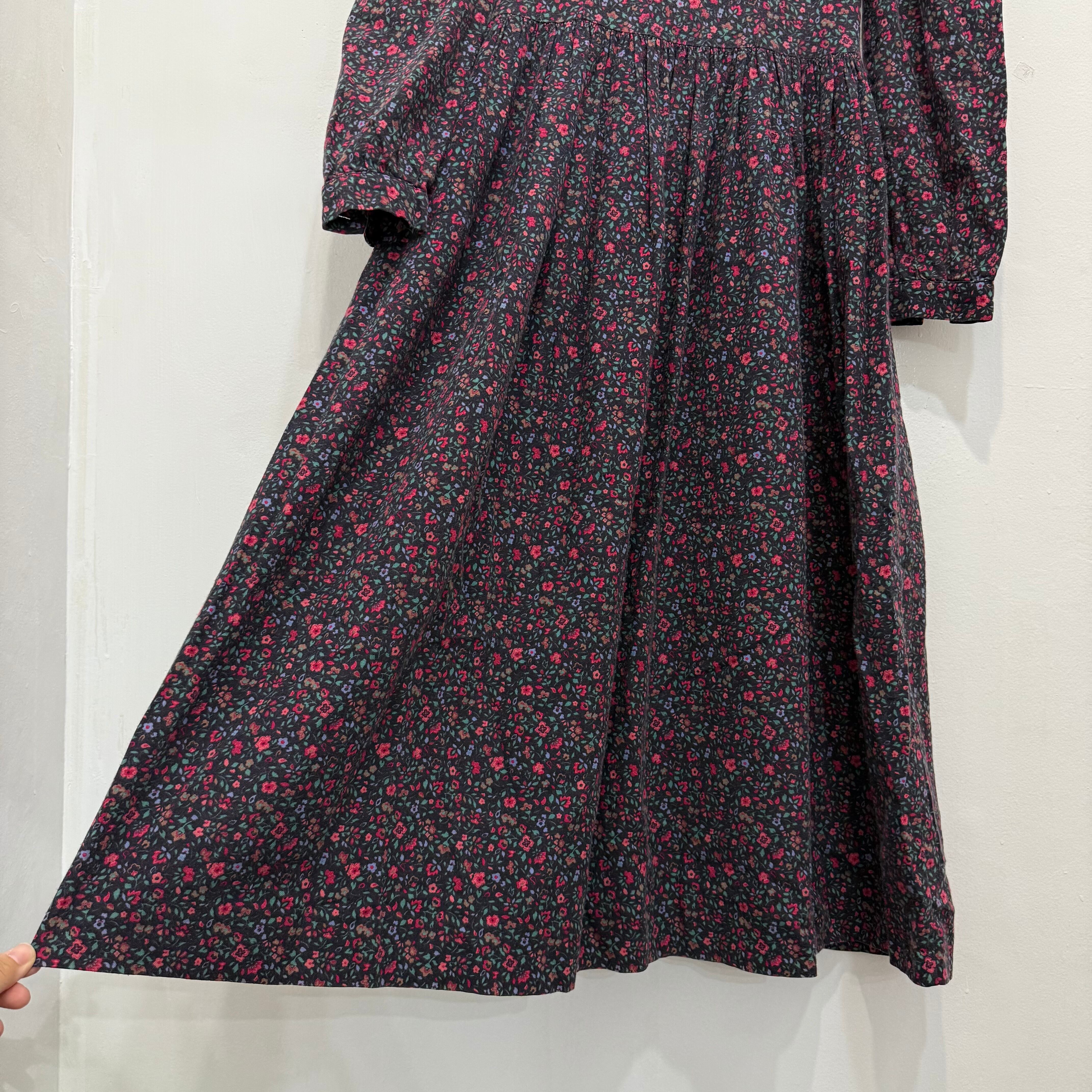 80-90s 英国製 Laura Ashley Flower pattern Dress / ローラアシュレイ 花柄 ワンピース ドレス 長袖 ロング ヴィンテージ