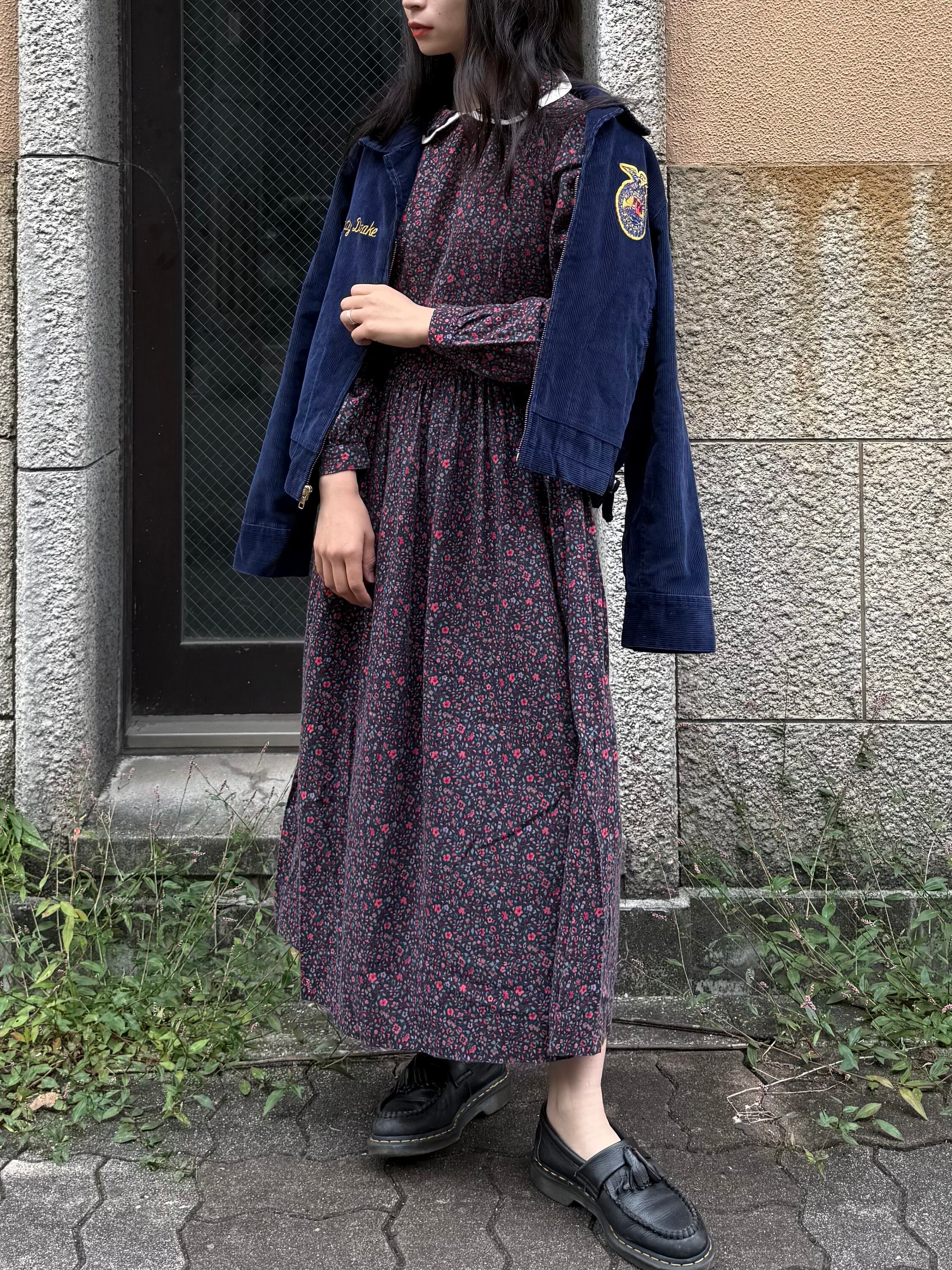 落ち着いたトーンの小さな花柄がとっても素敵で、1枚で主役になれるアイテムです。