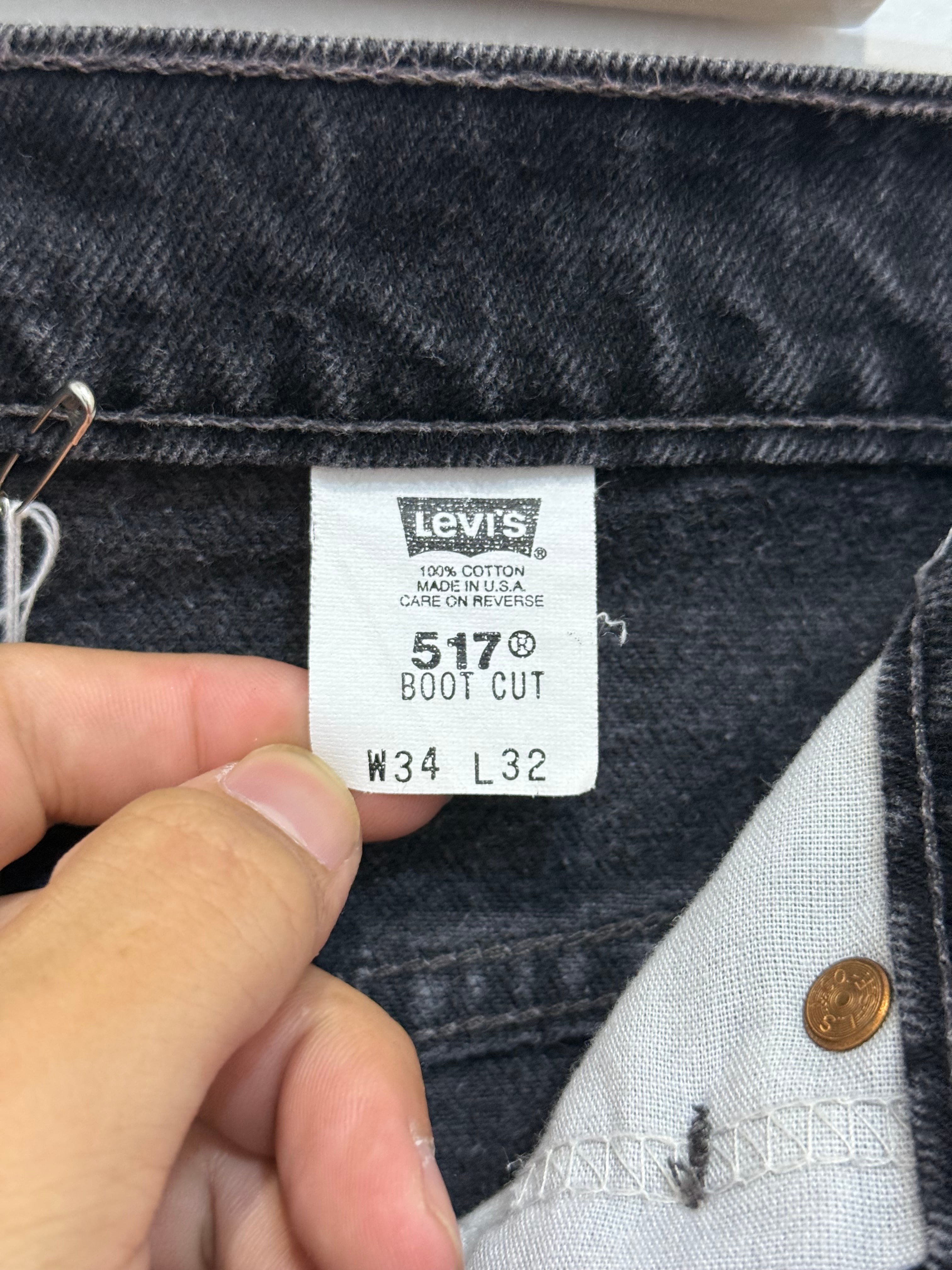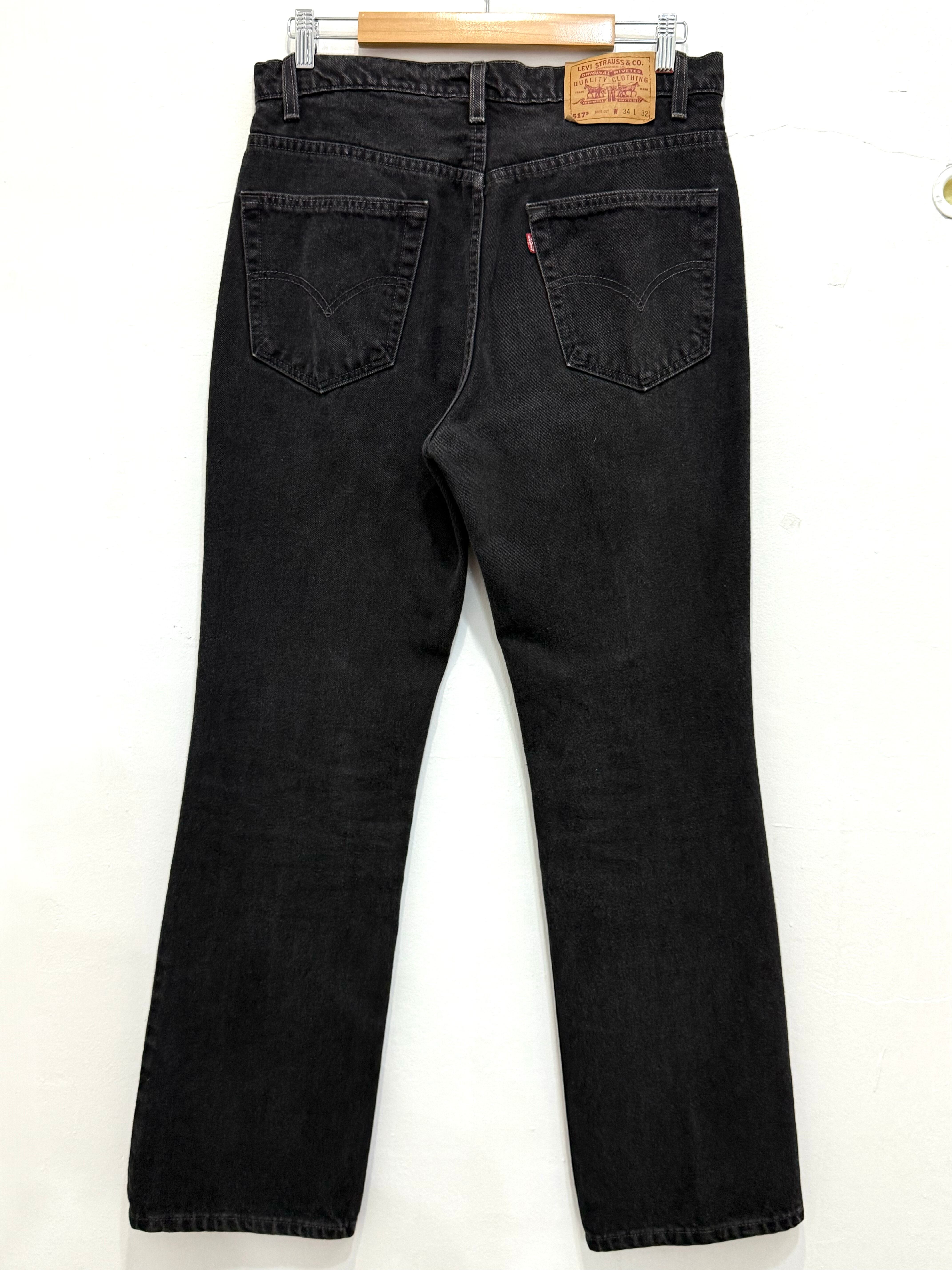 90s Levi's 00517-0260 517 Bootcut Flare Black Denim Pants 34×32 Made in USA