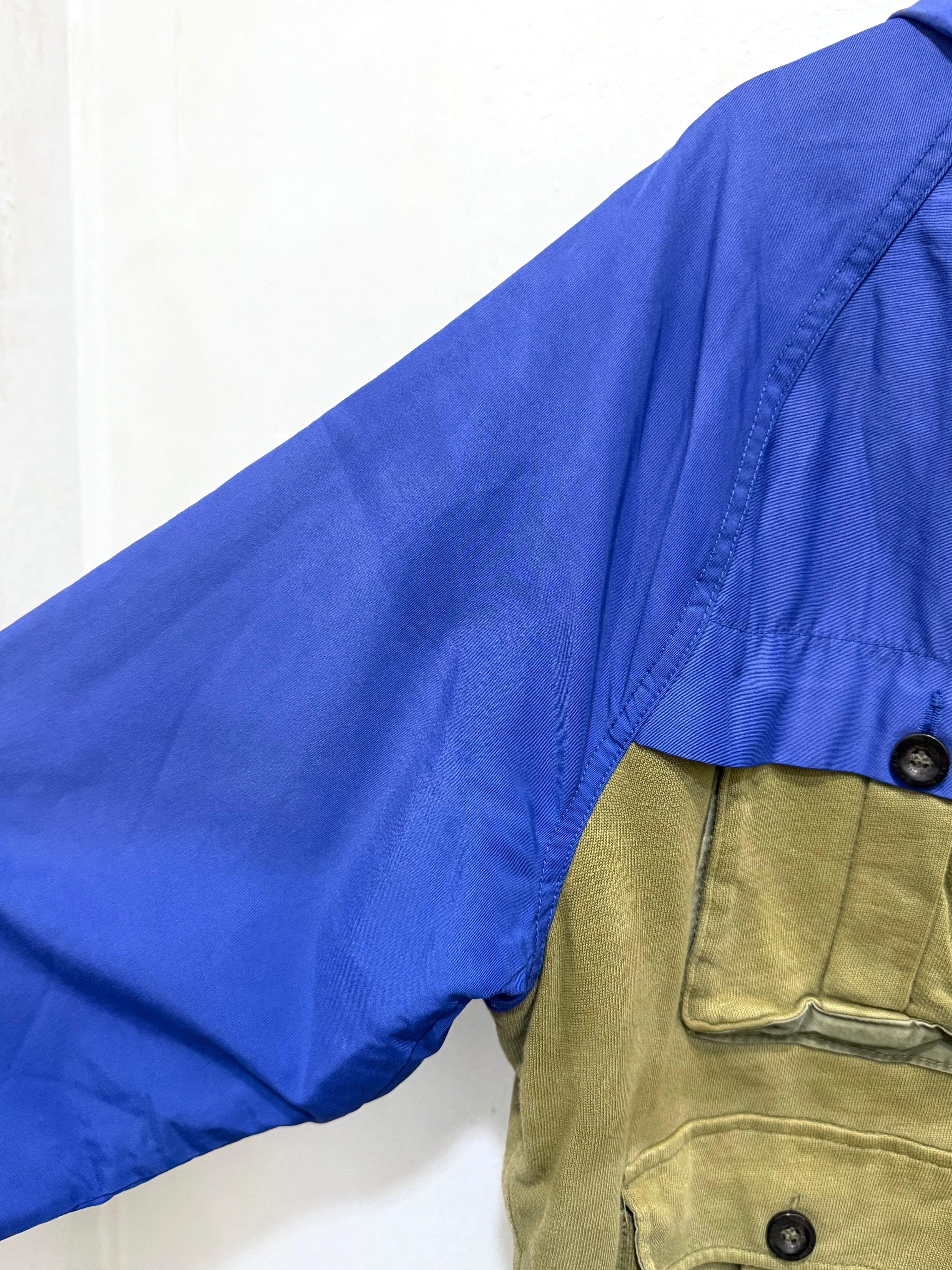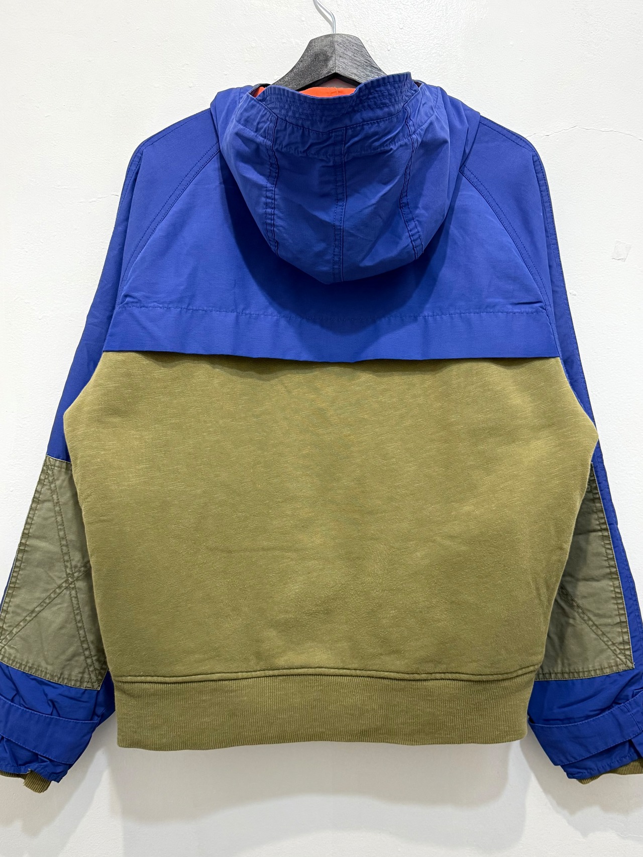 ナイロン×スウェットの大胆な切り替えが目を惹くアイテムです。