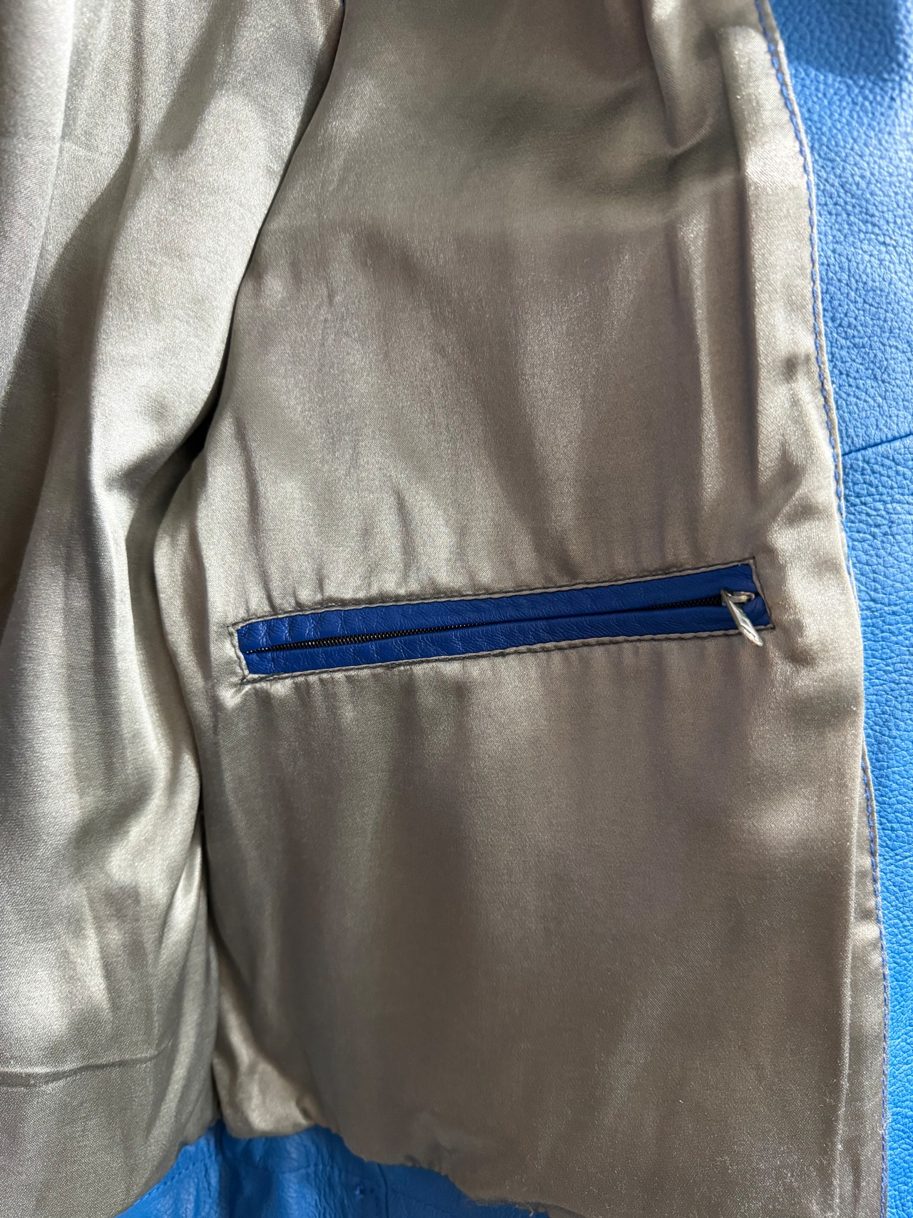 鮮やかなブルーカラーが特徴の1着。