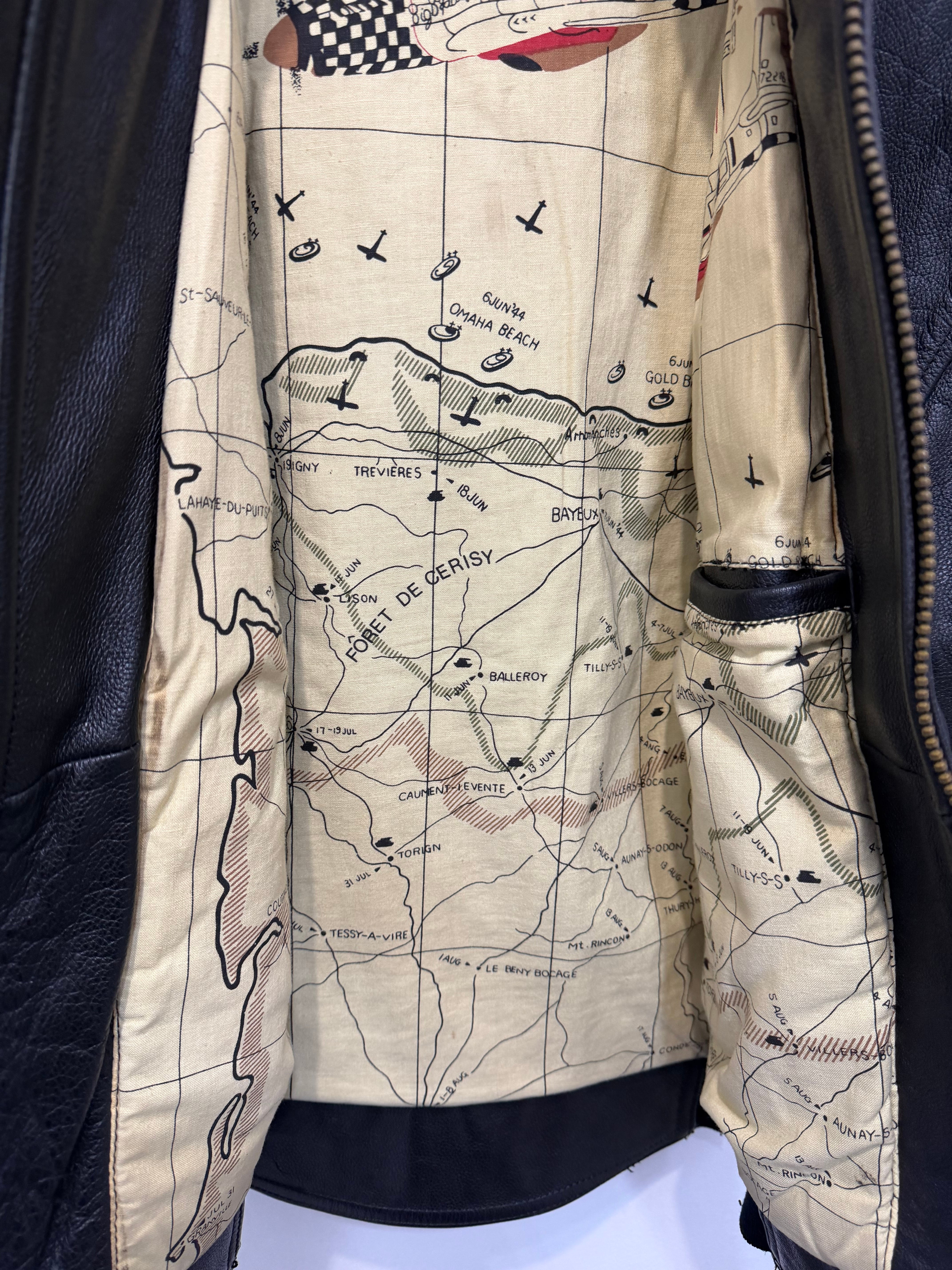 裏地が可愛らしいレザーボンバージャケット。