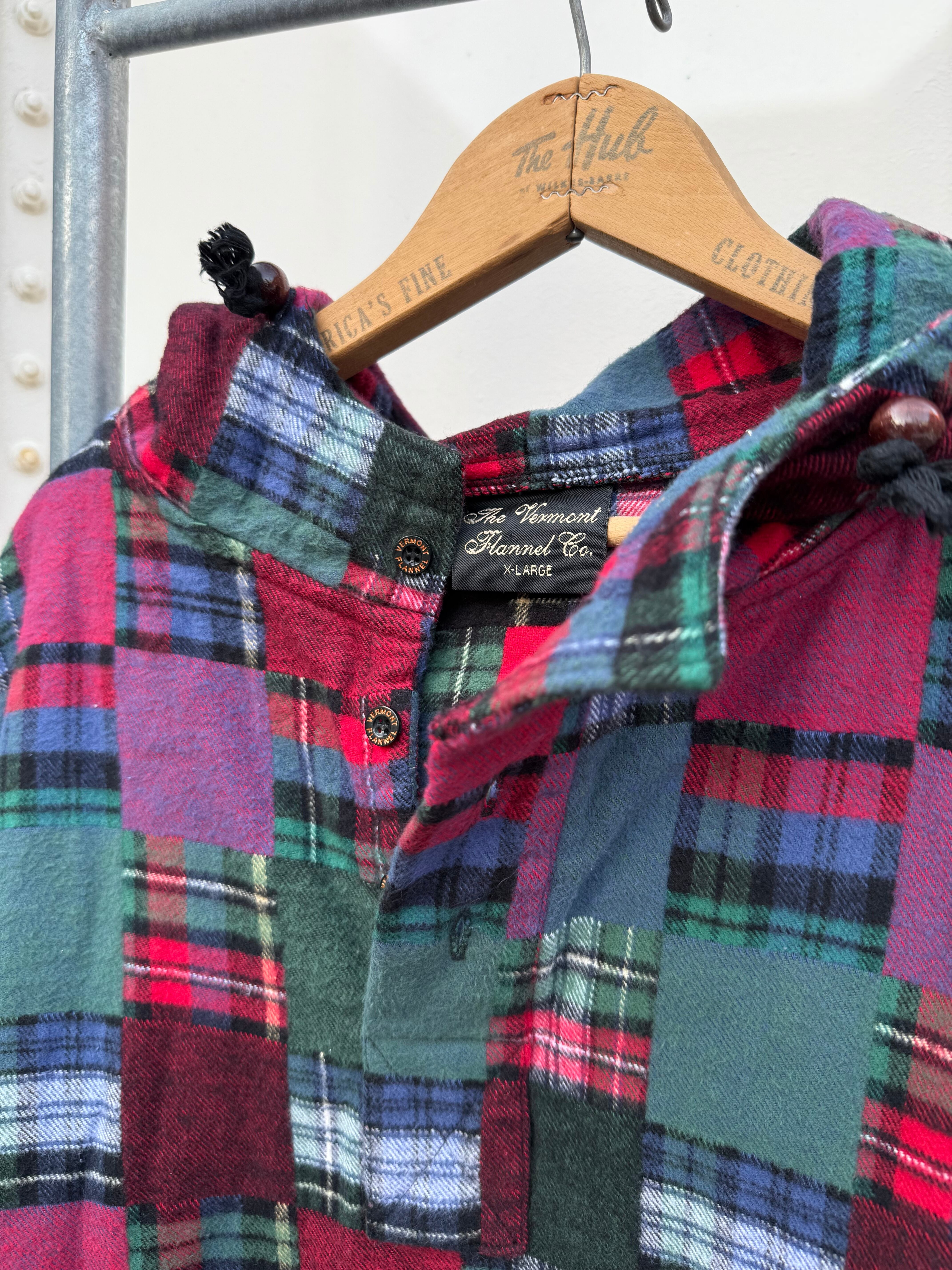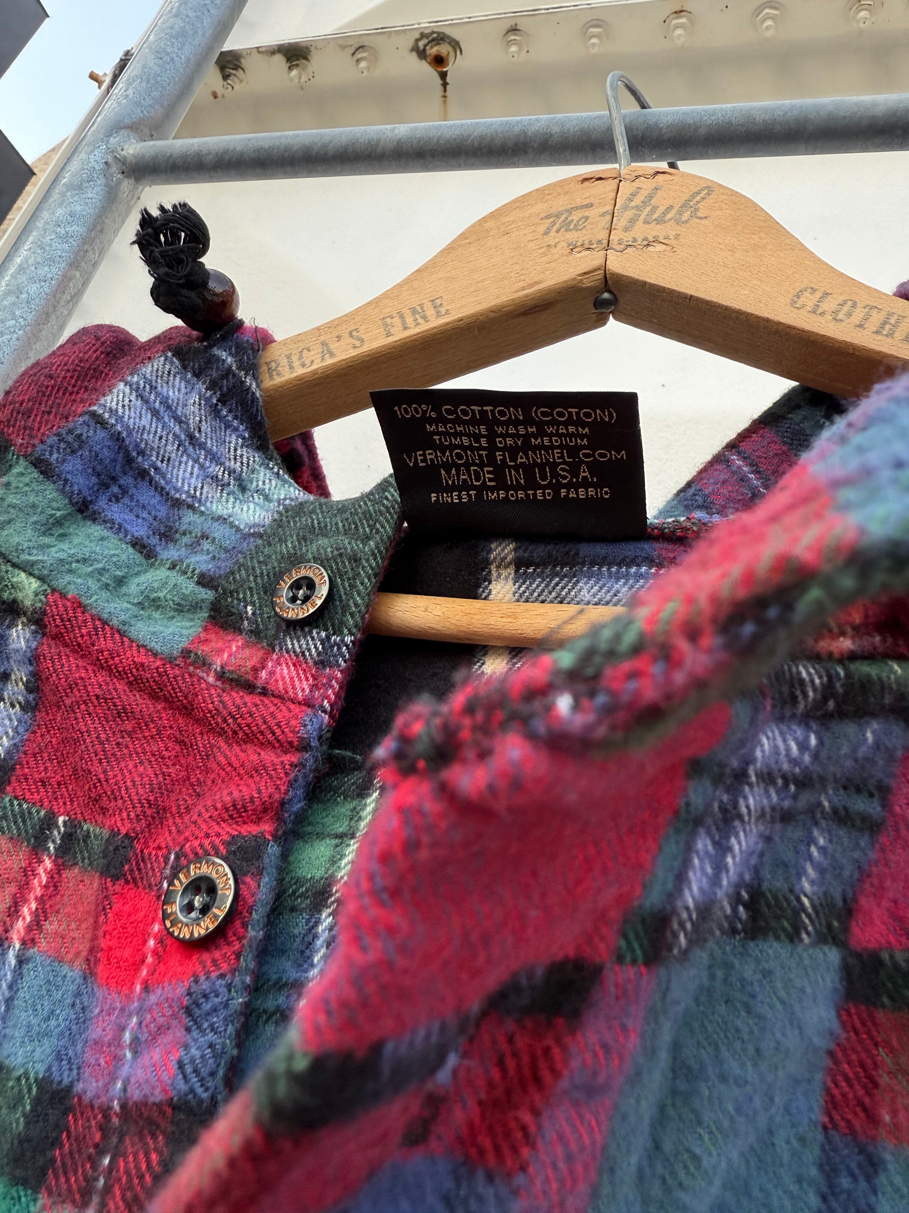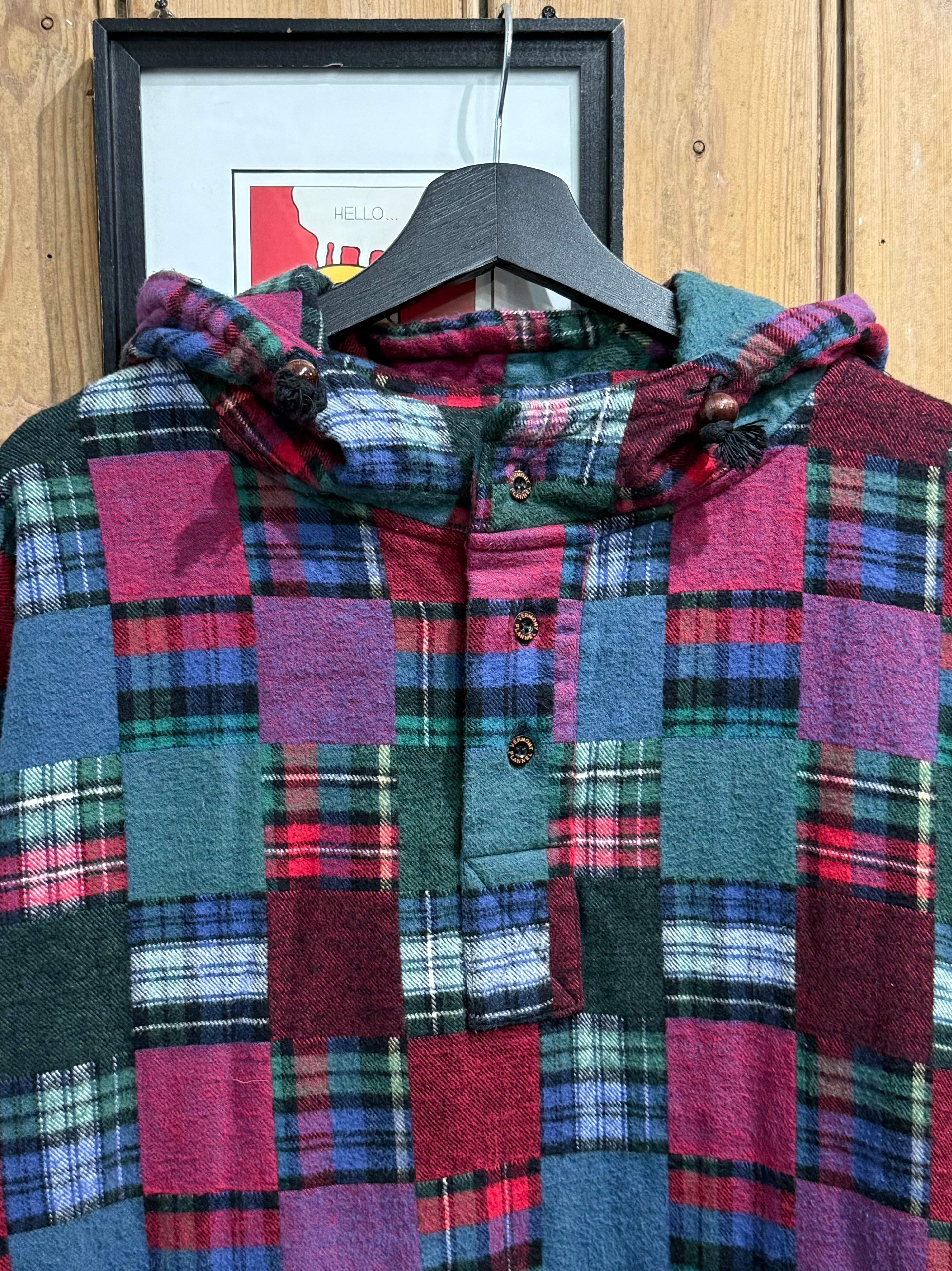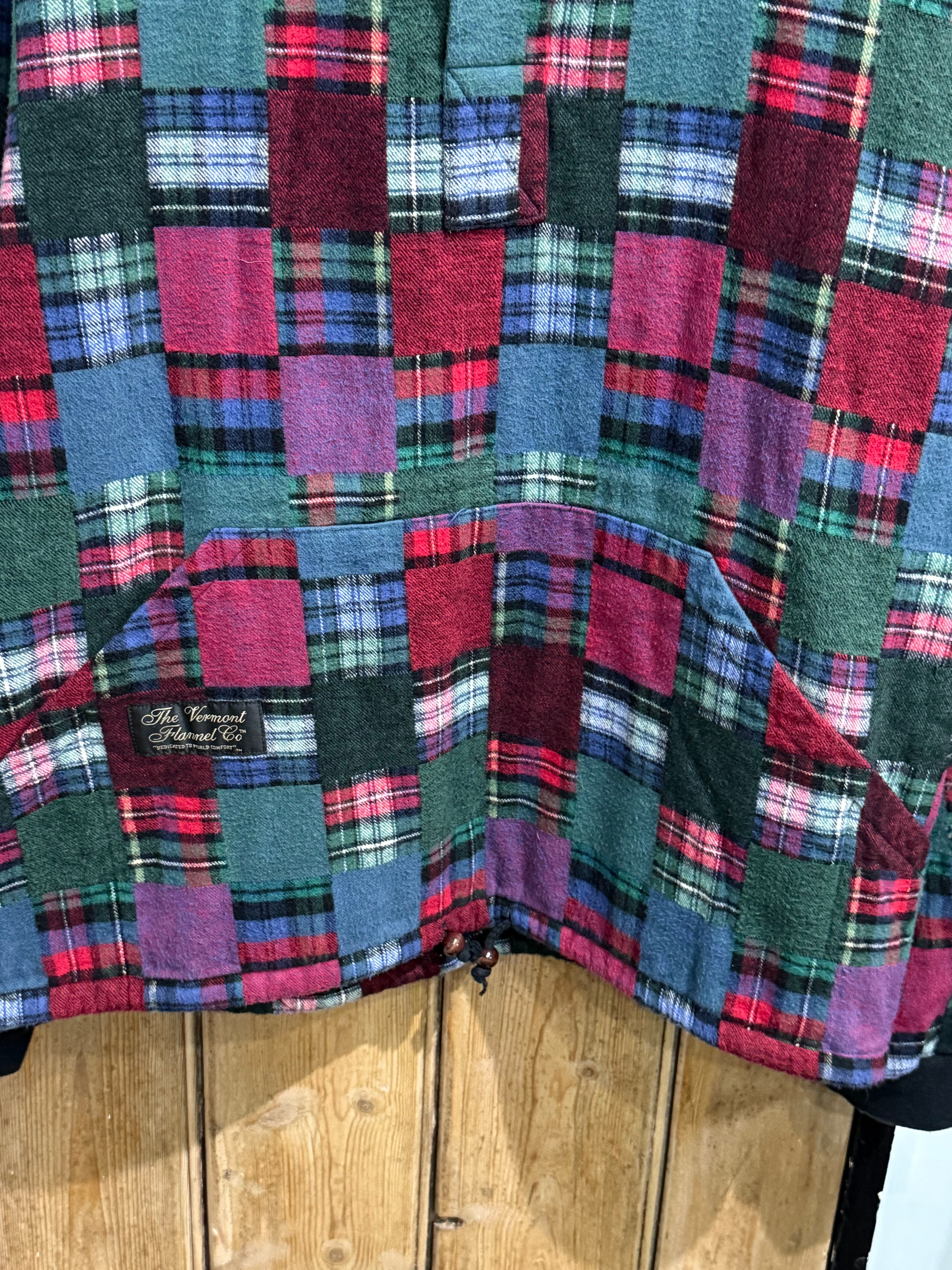 90s The Vermont Flannel Co. Patchwork Flannel Hoodie Made in USA