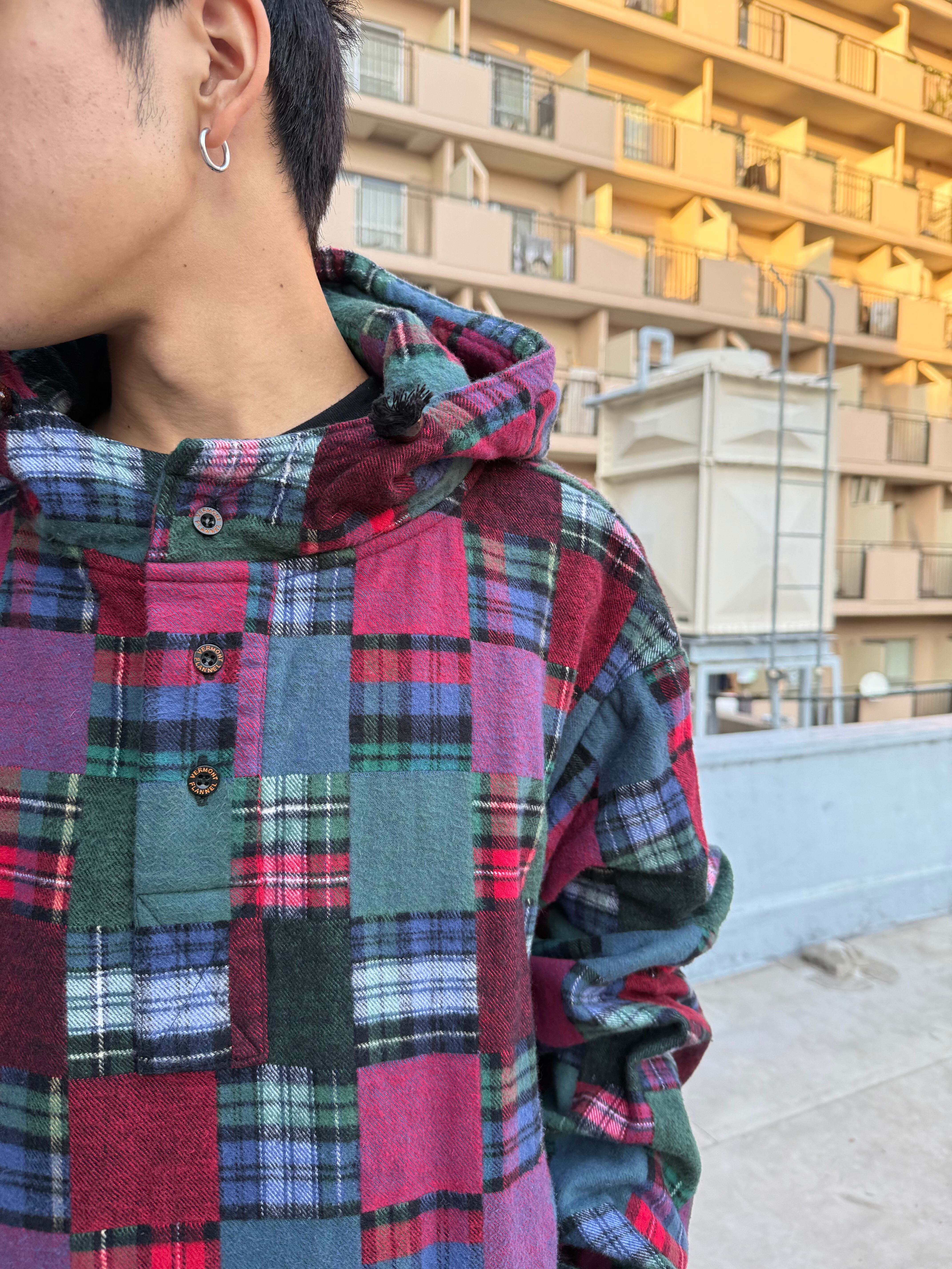 90s The Vermont Flannel Co. Patchwork Flannel Hoodie Made in USA / ザ・バーモント・フランネル・カンパニー パッチワーク フランネル フーディー パーカー USA製 | TOMOSHIBI USED&VINTAGE CLOTHING
