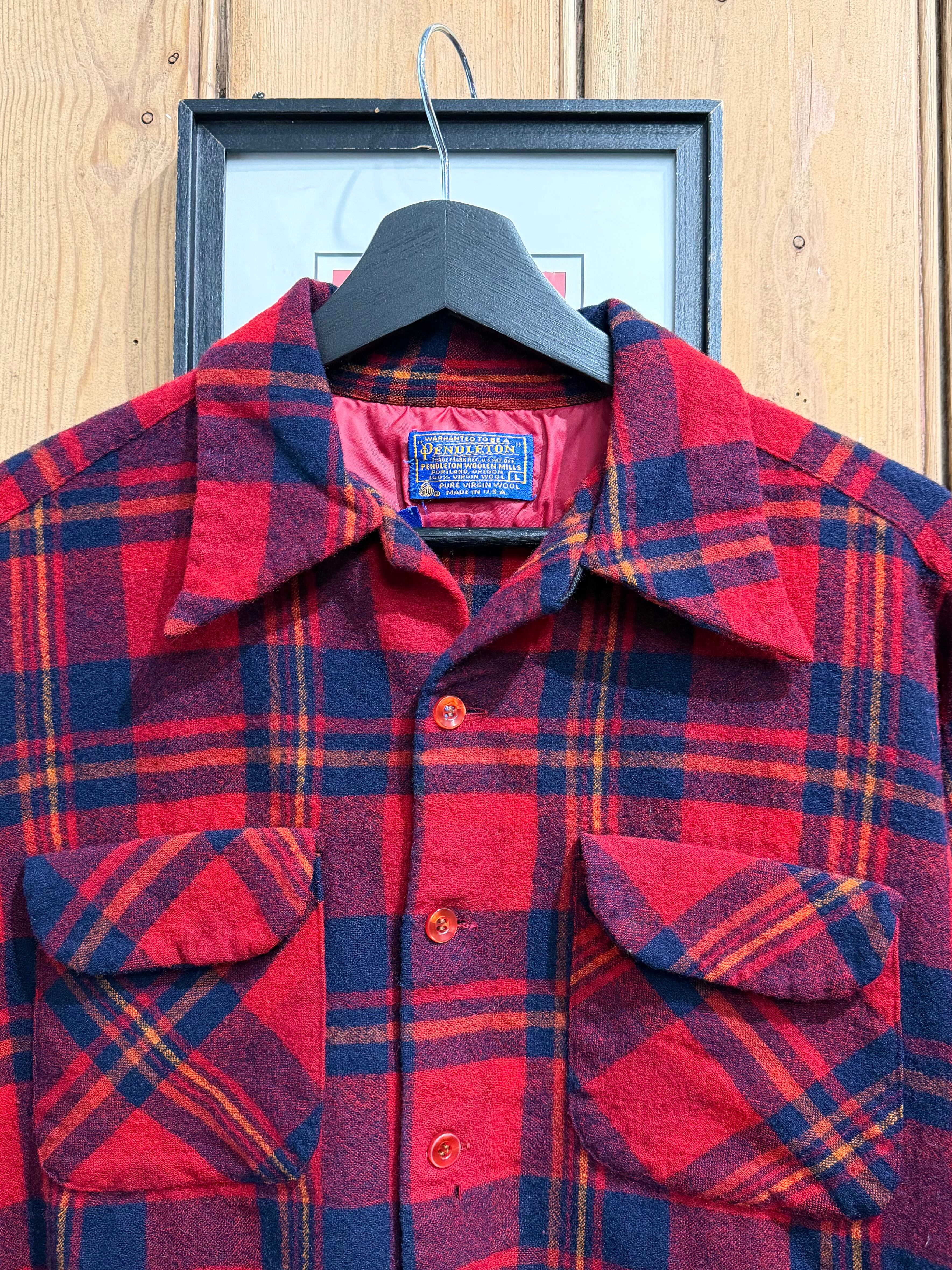 70s Pendleton Board Shirt Open Collar Wool Shirt Made in USA