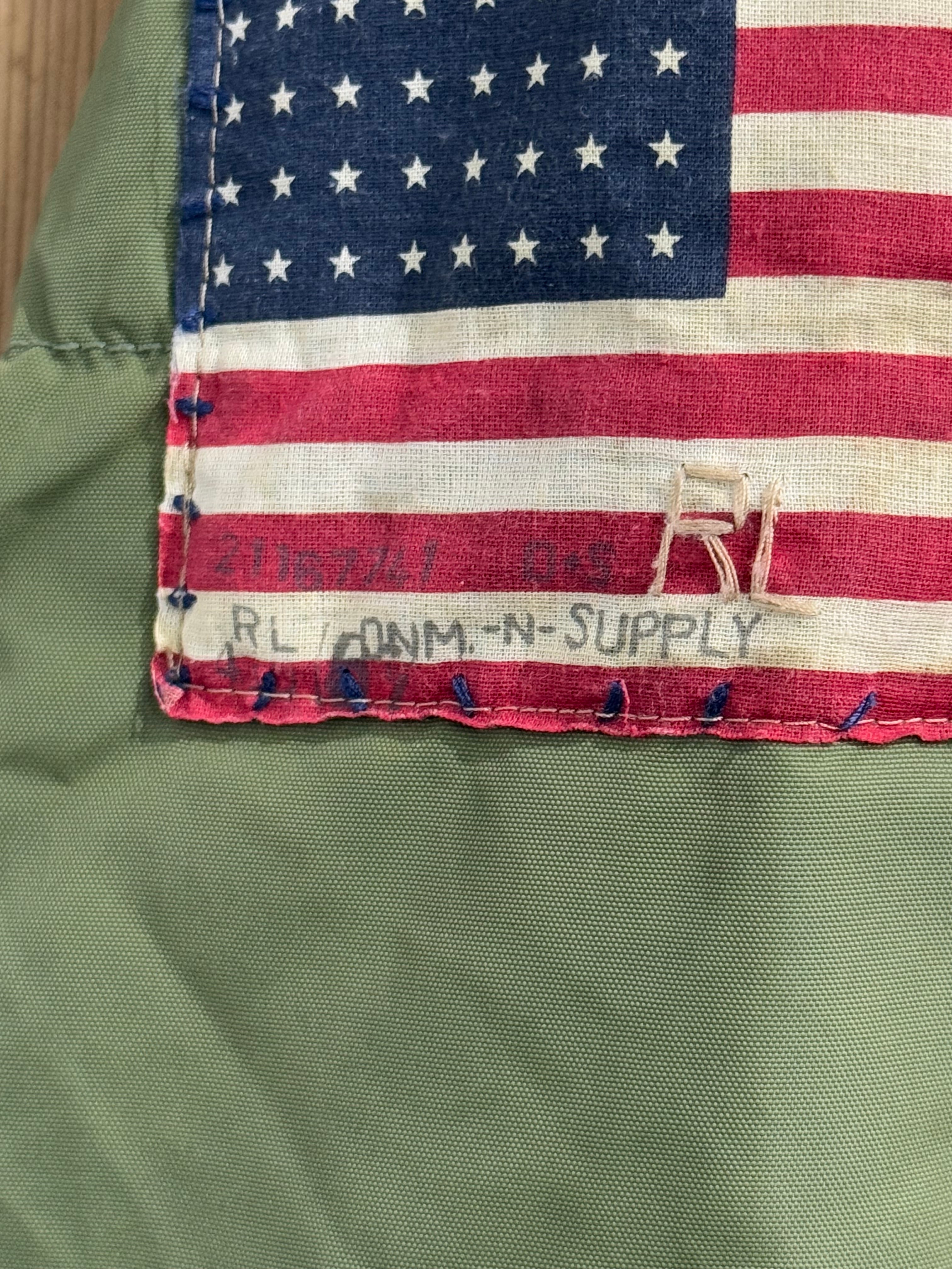 左袖のヴィンテージ風星条旗ワッペンがアクセントになった1着です。