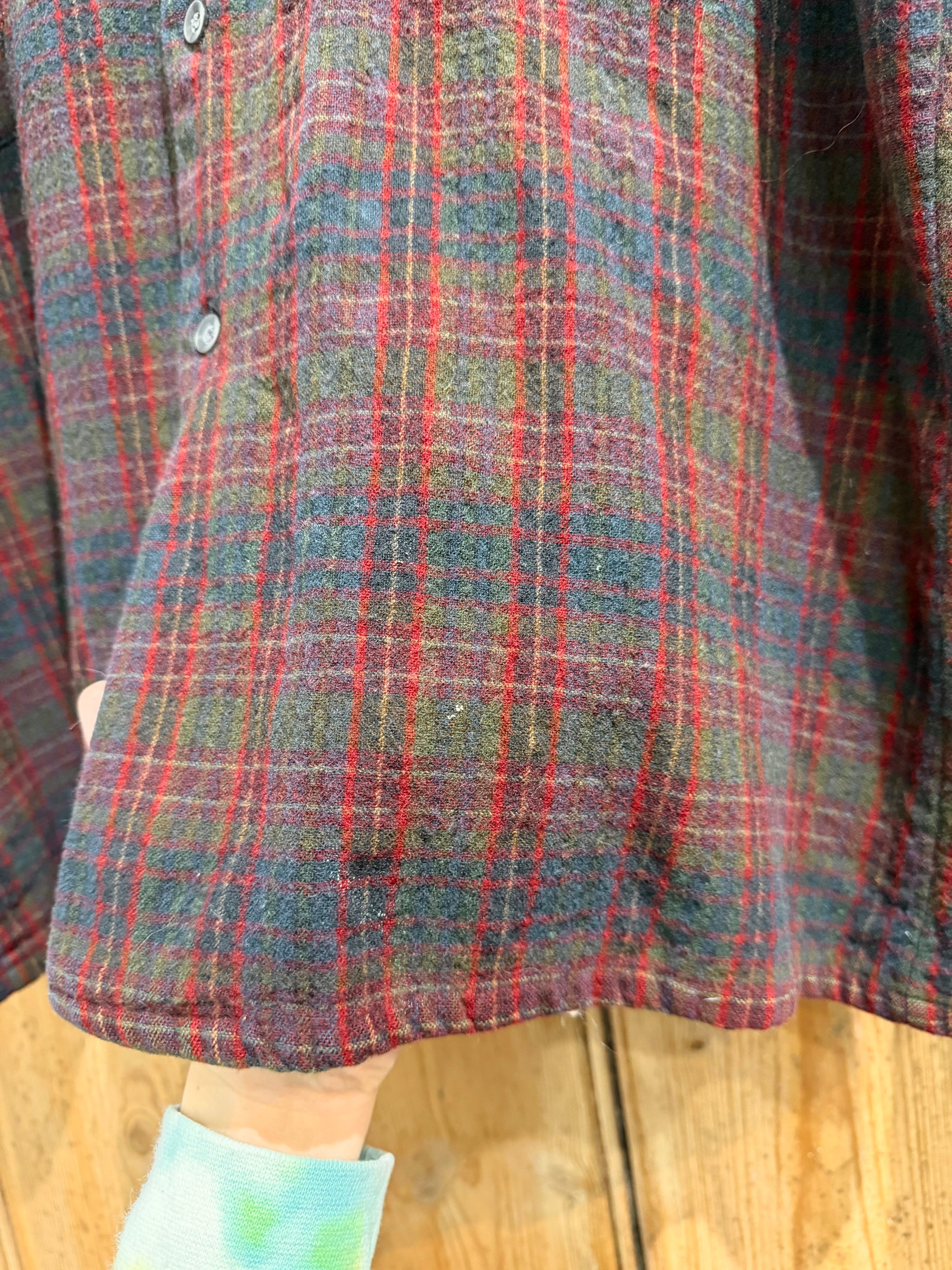 ウールシャツの中でも数が少ない身幅広めで着丈が短いシルエット。
