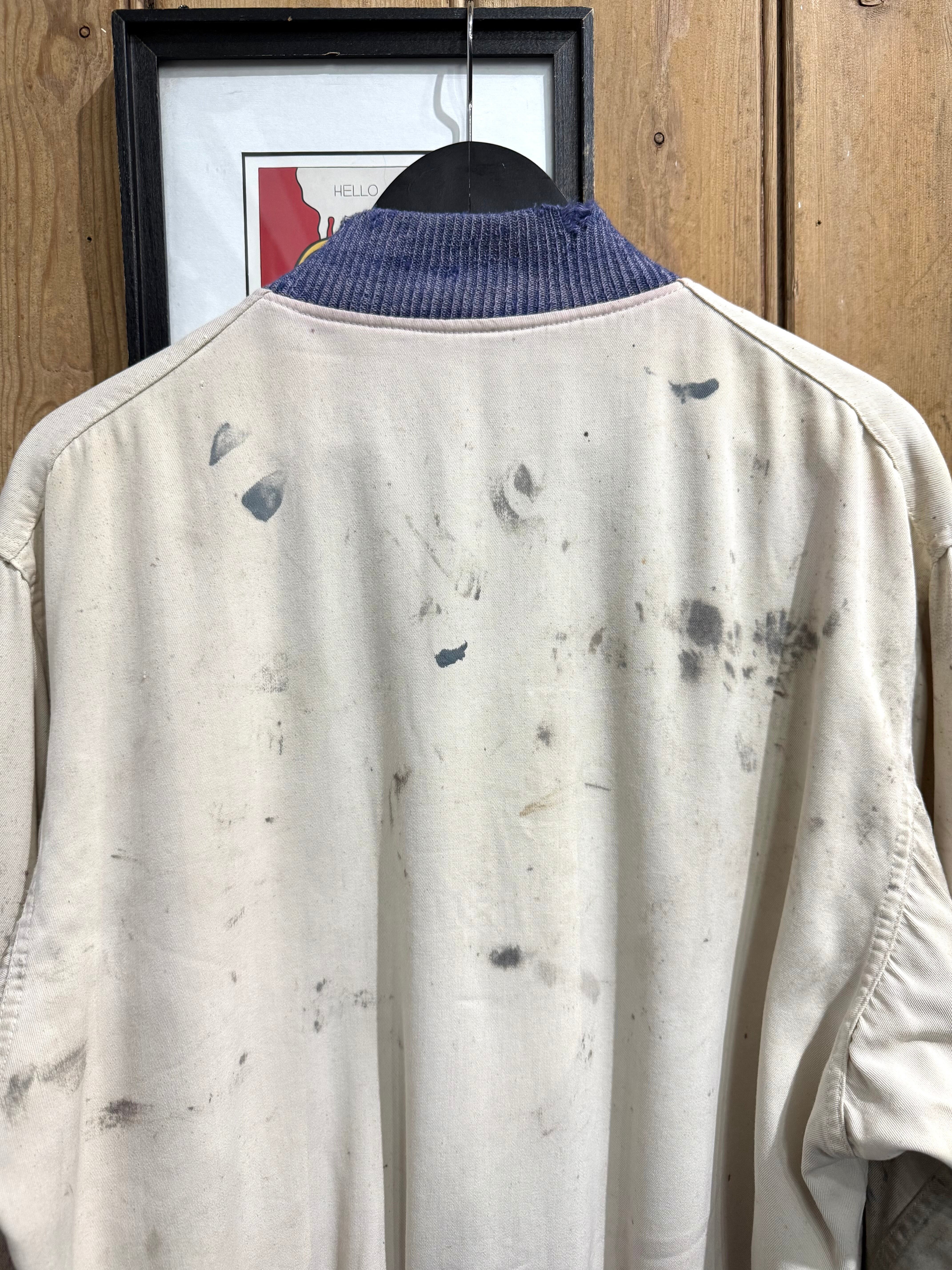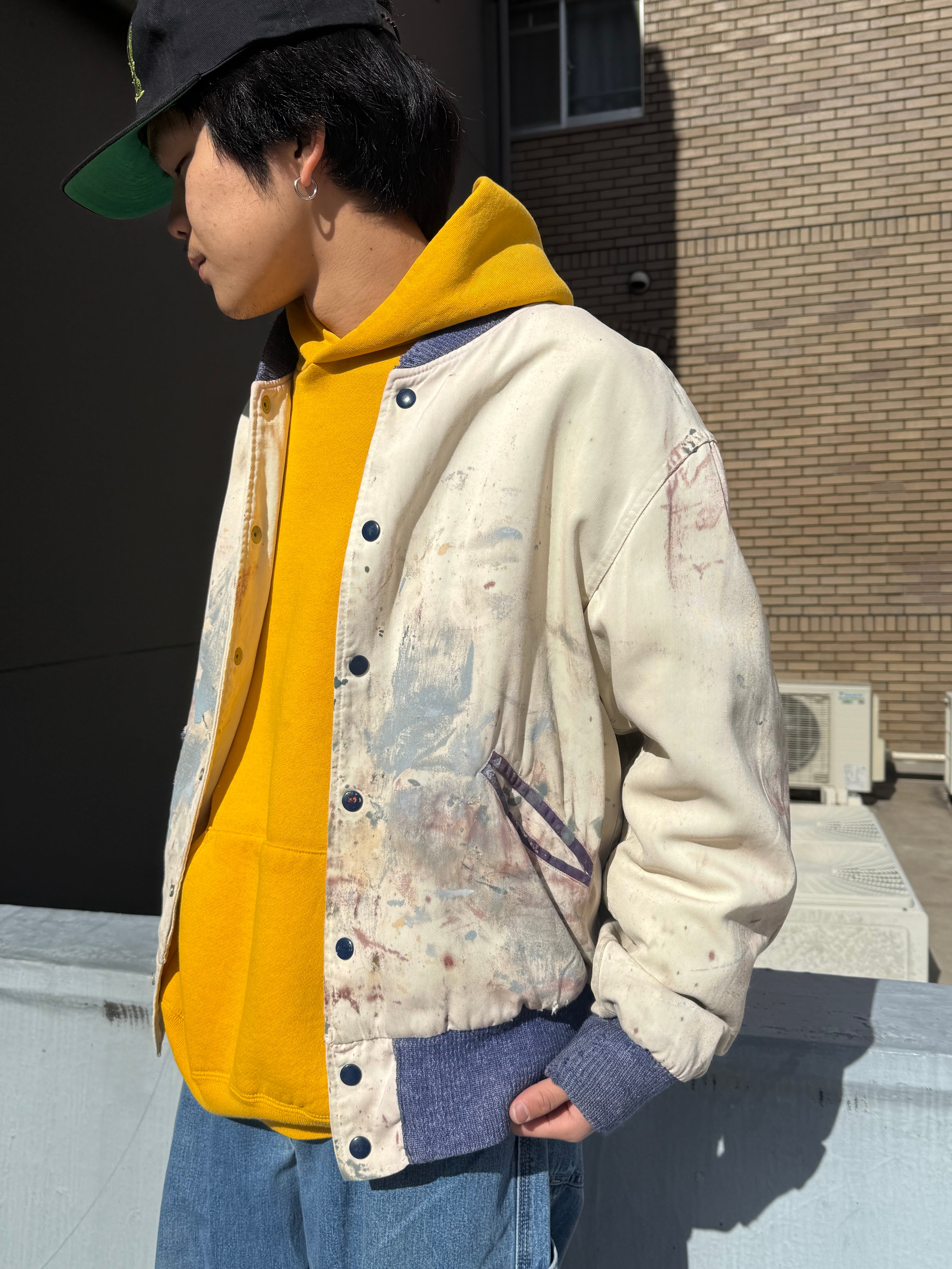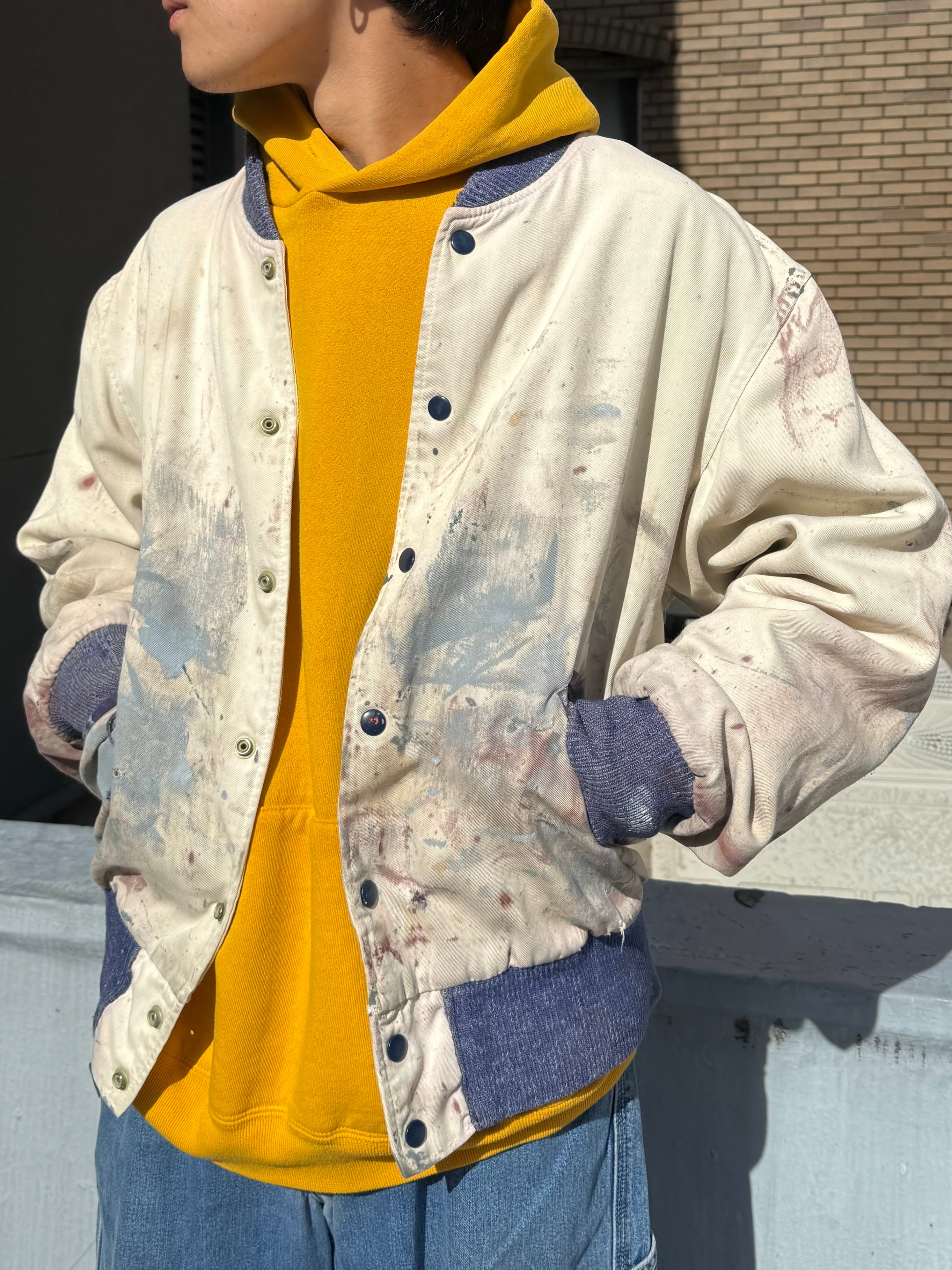 長年の着用によって刻まれた、無数のペンキ飛びやダメージがリアルに残っております。
