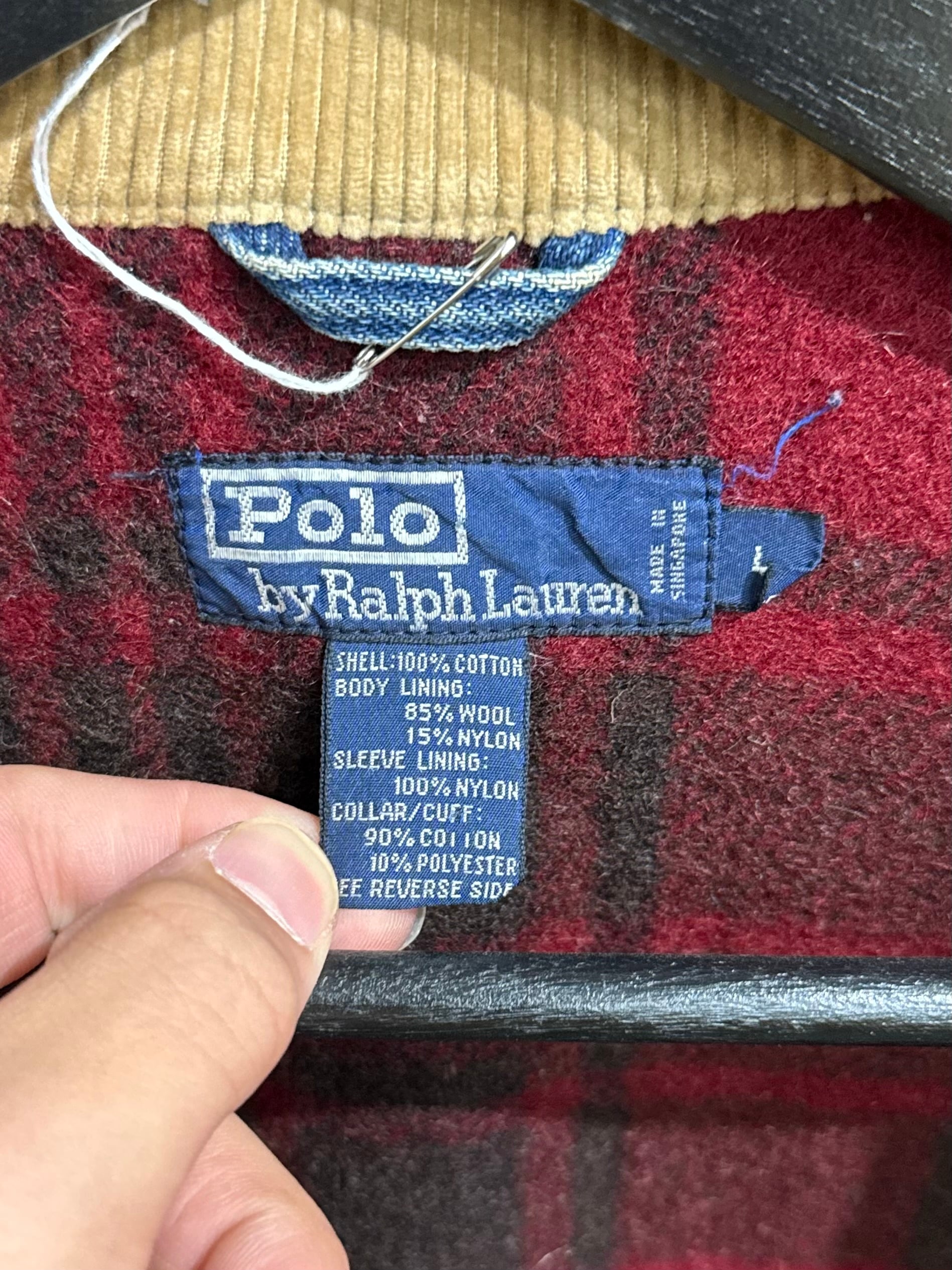 裏地には赤色チェック柄のウール素材で