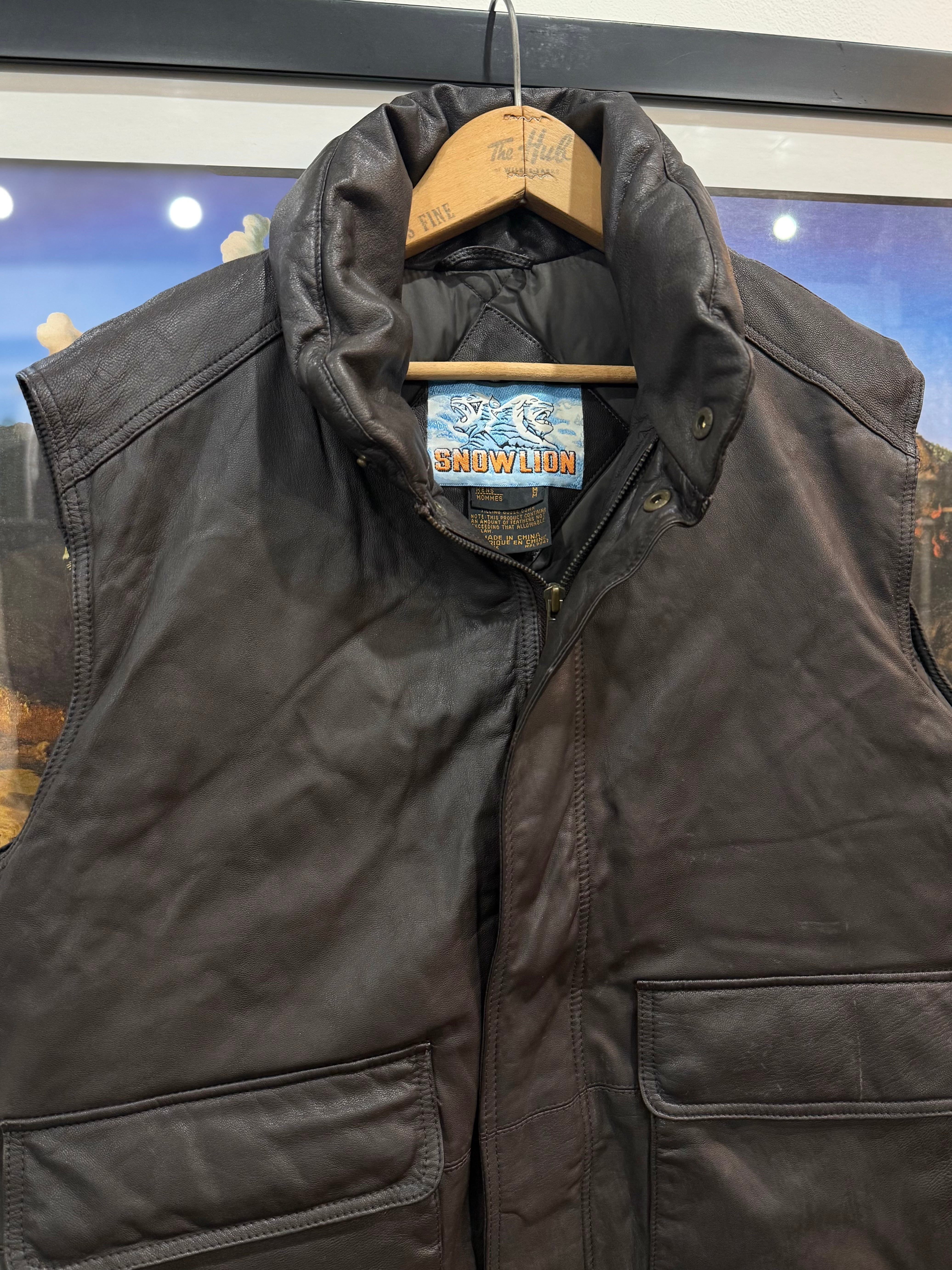 80s Eddie Bauer × SNOWLION Leather Down Vest / エディーバウアー 黒タグ 本革 レザー ダウン ベスト ジャケット ヴィンテージ