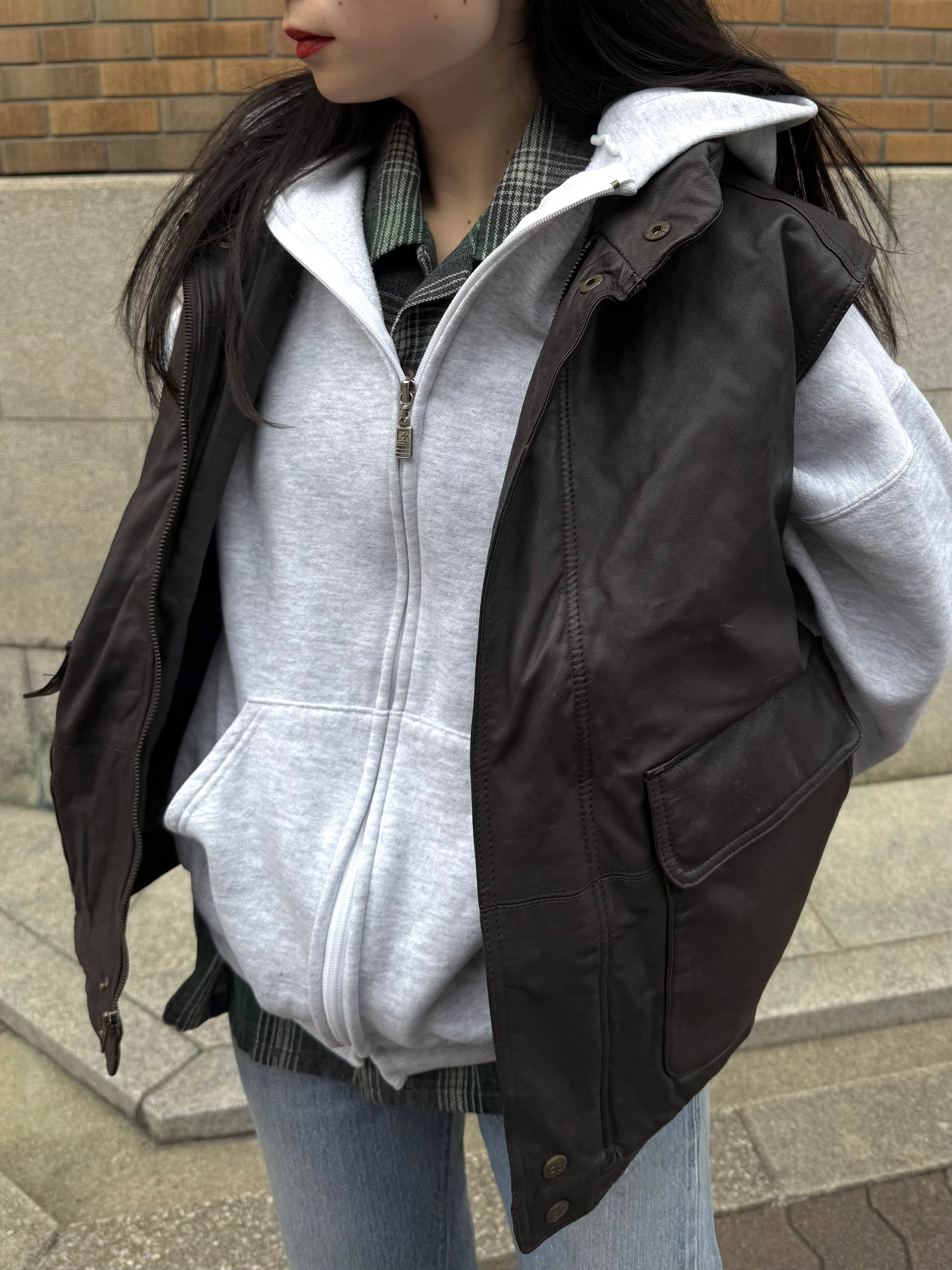 レザー特有の重厚感と、ダウンならではの保温がしっかりとございます。