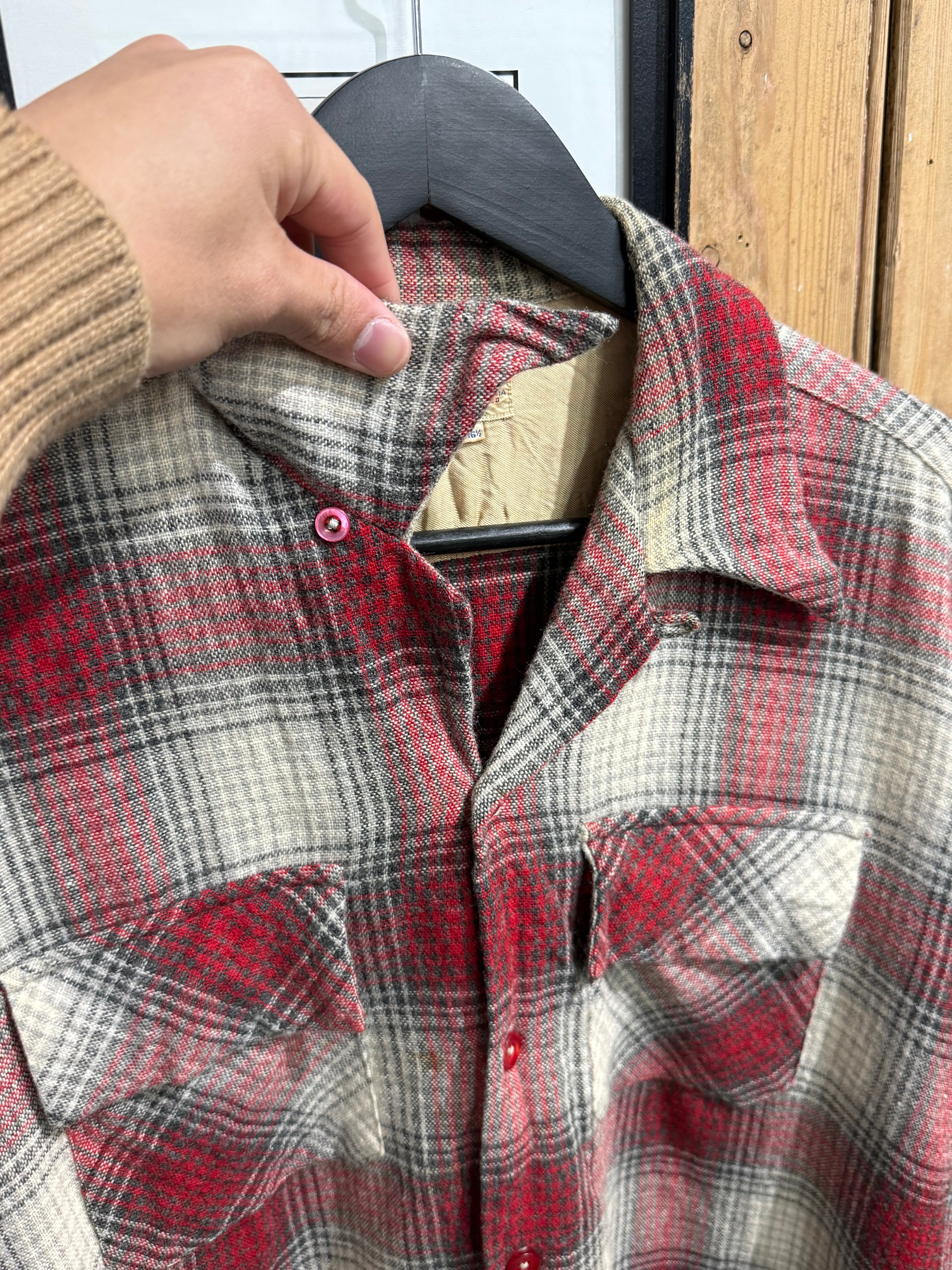50s New Era Shadow Check Wool Open Collar Shirt